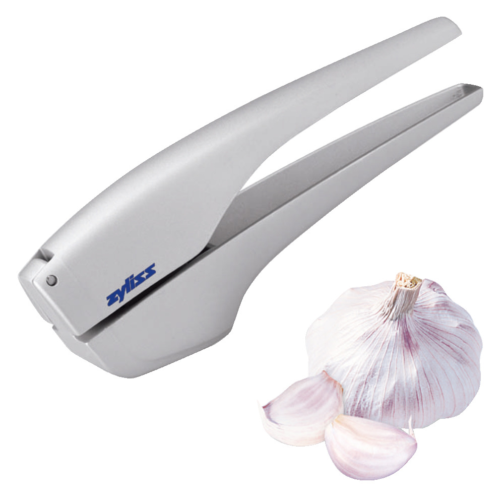 Presst mehrere Zehen Knoblauch auf einmal, extra großer Trichter. Knoblauch schälen vor dem Einsatz. Integriertes Reinigungswerkzeug in der Presse. Handreinigung empfohlen.