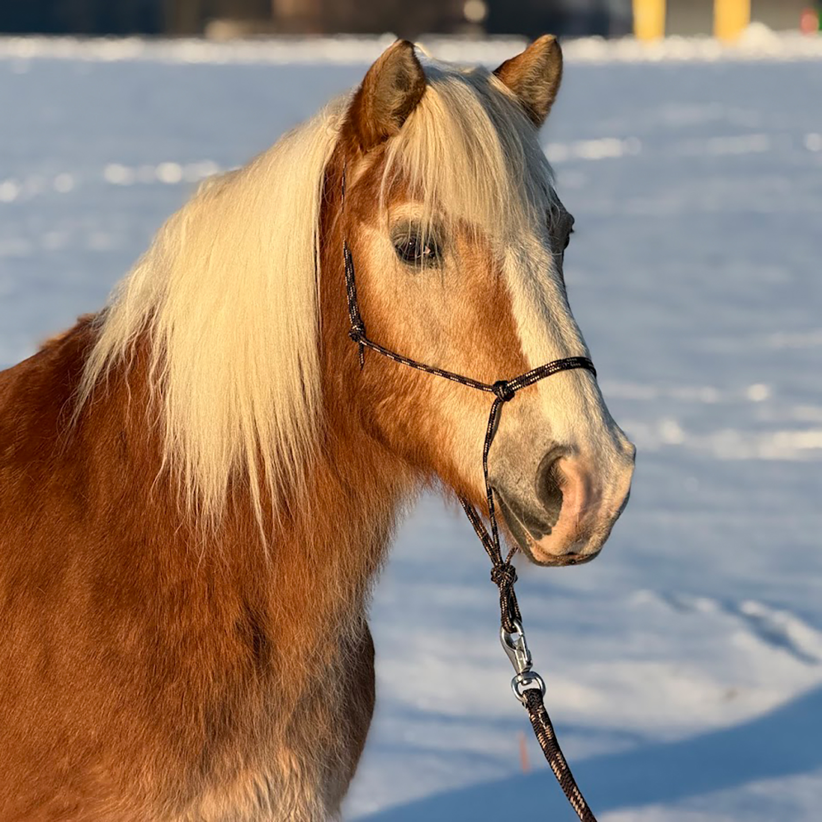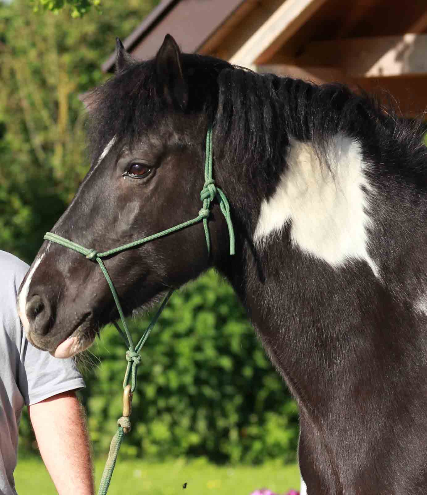 Das Knotenhalfter ist äußerst reißfest und darf niemals im Stall oder auf der Weide am Pferd verbleiben. Auch beim Anbinden des Pferdes ist stets Aufsicht erforderlich.