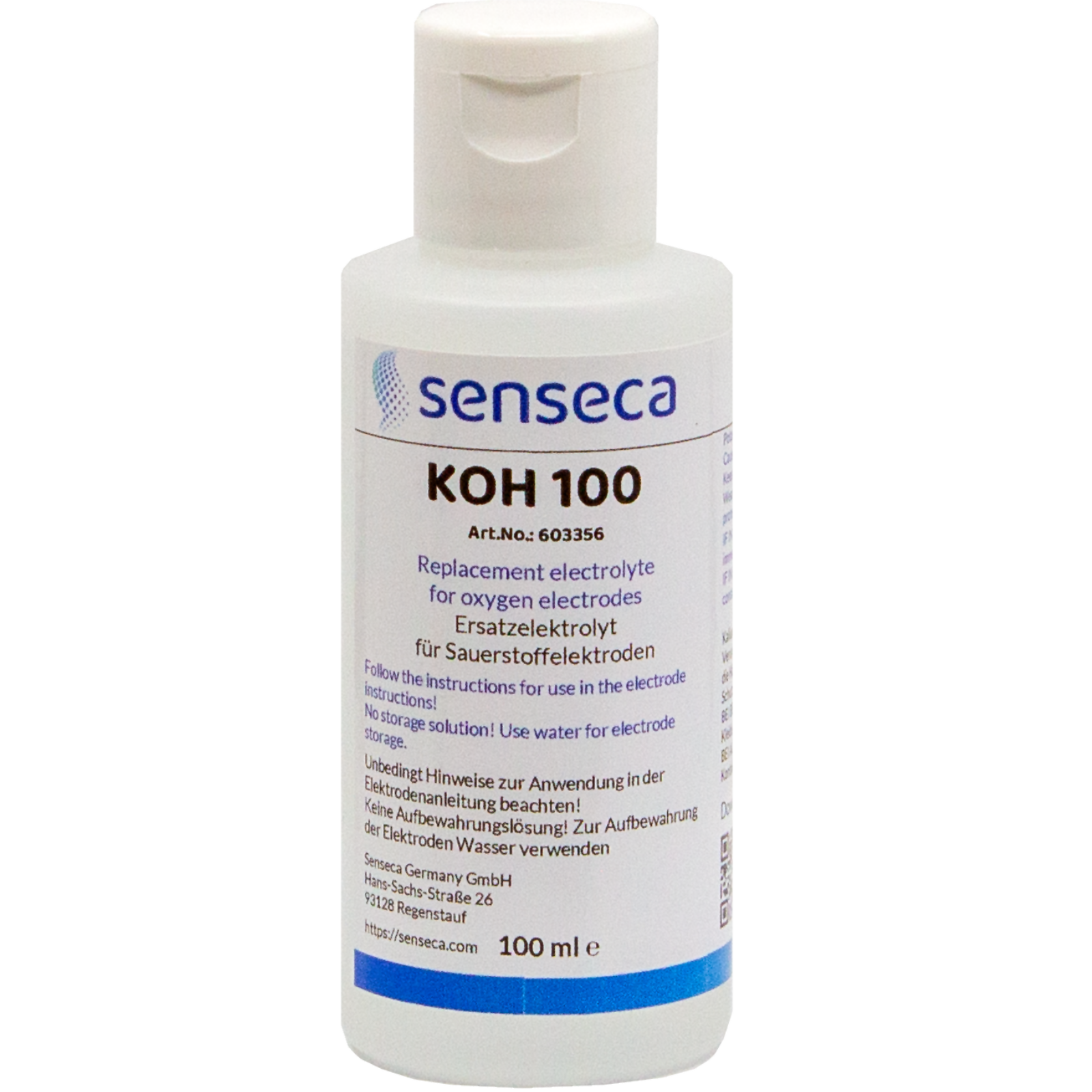 KOH 100 Nachfülllösung – Elektrolyt für SauerstoffsensorenDiese Ersatzflüssigkeit dient zum Auffüllen der Sauerstoffelektroden von Senseca.Lieferung in einer handlichen 100-ml-Flasche.