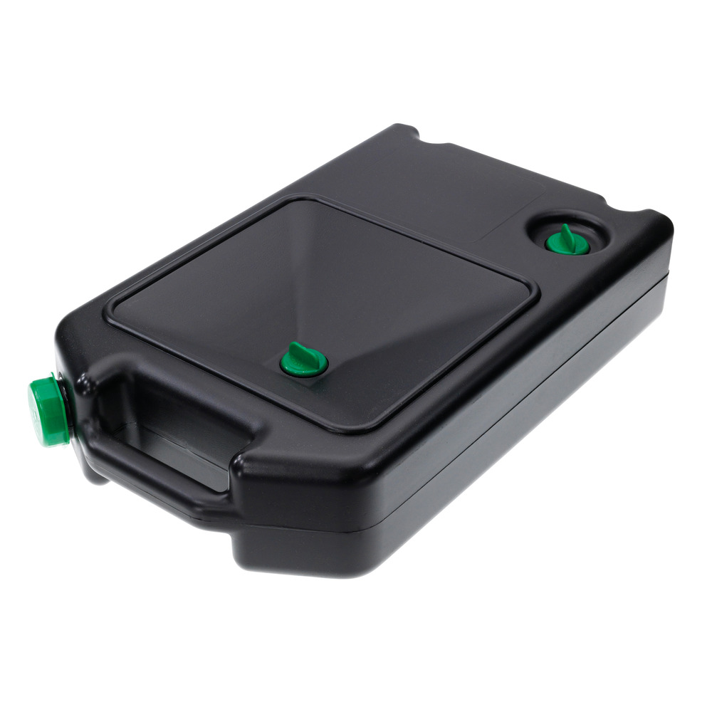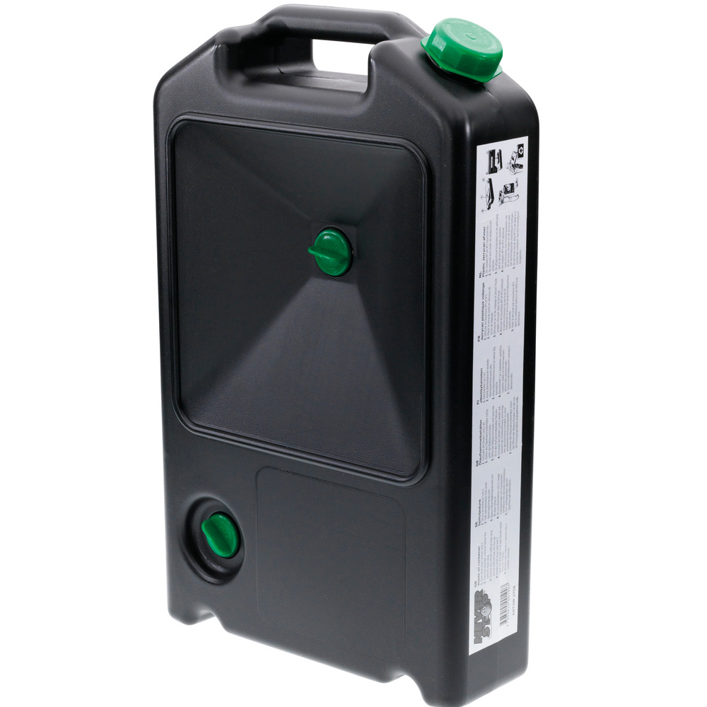 Innovativer Kombi-Kanister, kann sowohl als tragbarer Kanister verwendet werden, als auch als Ölablasswanne. Inhalt: 7 L Fassungsvermögen. Maße: ca. 500 x 300 x 130 mm.