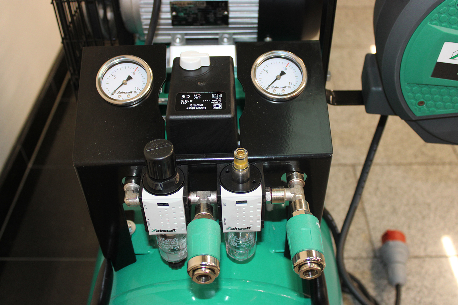 Die Top-Ausstattung umfasst einen Condor-Markendruckschalter, ein Fahrwerk und einen neuentwickelten Wartungsblock mit je einer DL-Entnahmestelle für reine Luft über einen Filterdruckregler oder geölte Luft über einen DL-Öler für Geräte, die eine Schmierung benötigen.