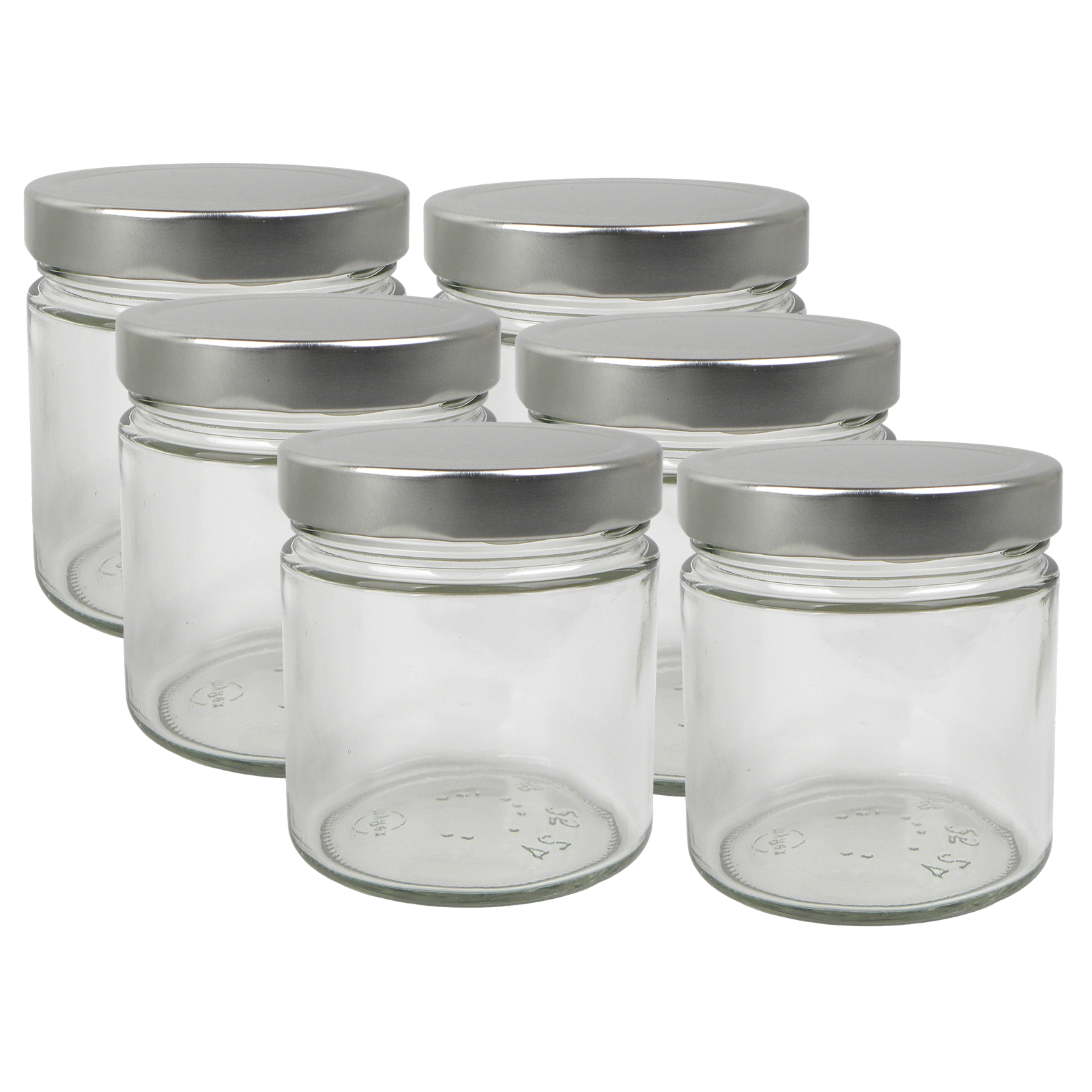 Konservenglas 6-er mit Schaubdeckel silber