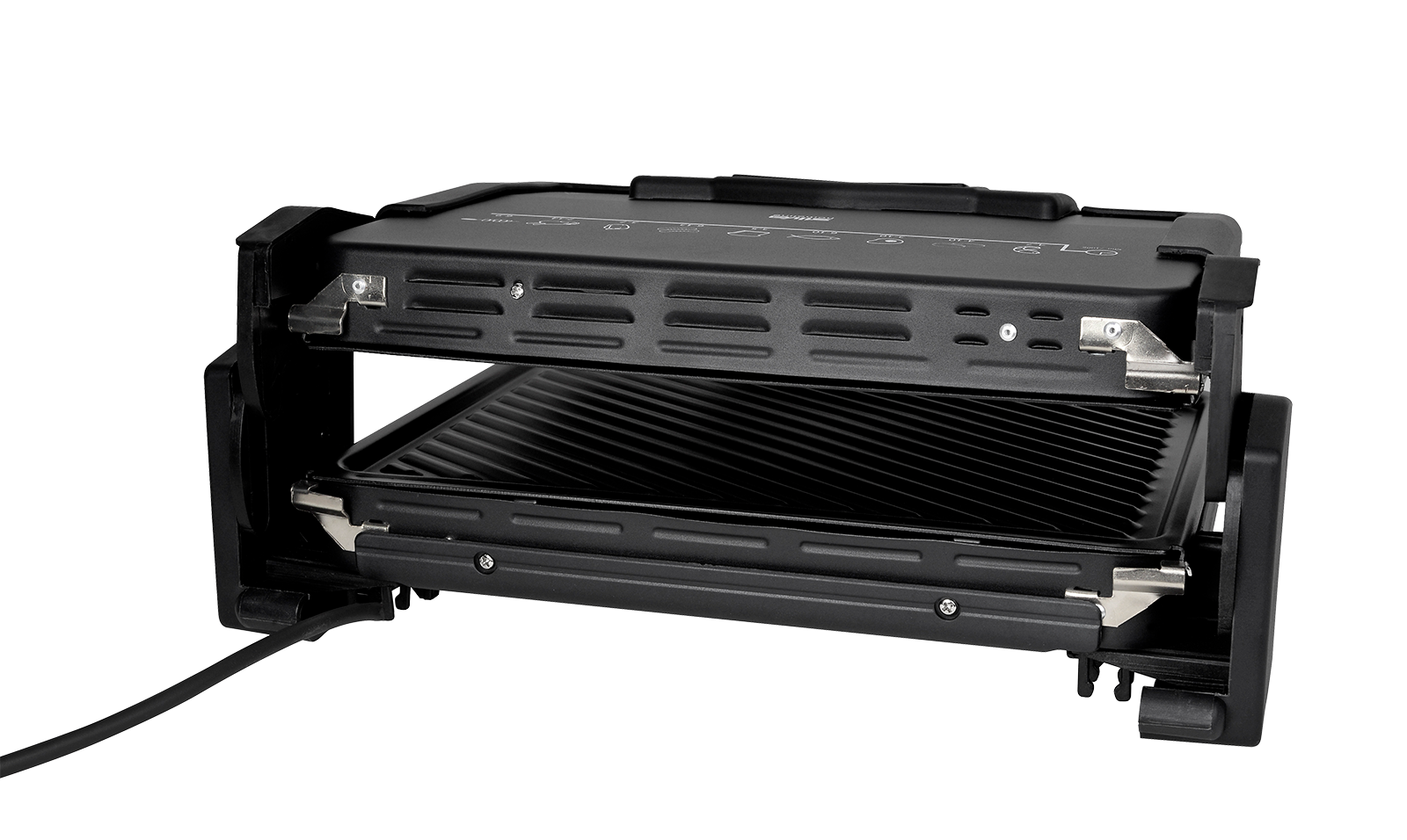 Das 1.700-Watt-Gerät mit Antihaftbeschichtung hat abnehmbare Grillplatten und eine Grillfläche von ca. 30,3 x 20,3 cm.Ausgestattet mit fünf Grillstufen kann die Temperatur je nach Bedarf eingestellt werden.Eine Aufheizkontrollleuchte zeigt an, wann das Gerät einsatzbereit ist.Wärmeisolierte Griffe machen den Sandwichtoaster einfach und sicher in der Handhabung.Aber nicht nur für Sandwiches - ob Steak, Lachs, Garnelen oder Gemüse - ist dieser Kontaktgrill ideal.Mit der Kombination aus Grill und Toaster können Sie auch im Handumdrehen gesunde Mahlzeiten zubereiten!