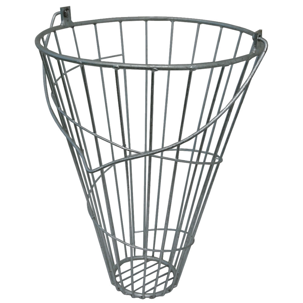 Raufe für Stroh, Heu oder Futter. Aus Edelstahl. Maße: ø 37 cm oben, ø 13 cm unten, Höhe 50 cm. Zum Aufstellen oder -hängen geeignet!