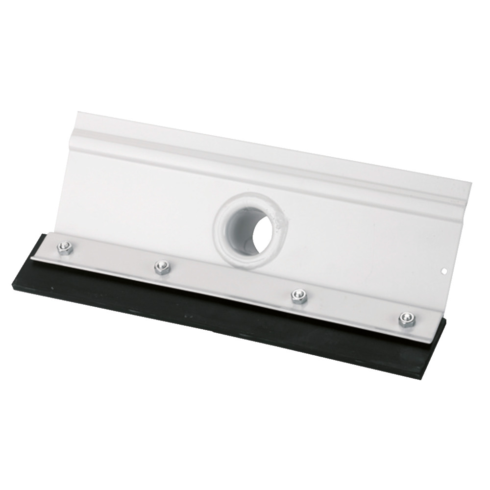 Kotschieber aus pulverbeschichtetem Stahl, geschraubt, mit auswechselbarem, ammoniakbeständigem Abstreifgummi. Hochwertige Gummimischung mit Gewebeeinlage garantiert höchste Flexibilität und verhindert gleichzeitig das Auftreten von Brüchen und Rissen, sehr hohe Standzeiten durch geringen Abrieb. Stielhalter Ø 30 mm