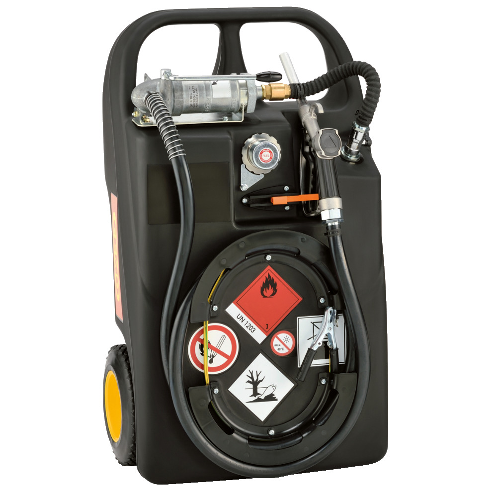 Trolley 60 L:Räder Ø 240 mm, Zapfschlauch 2,7 m, Schwallwand, Zapfpistolenhalter integriert