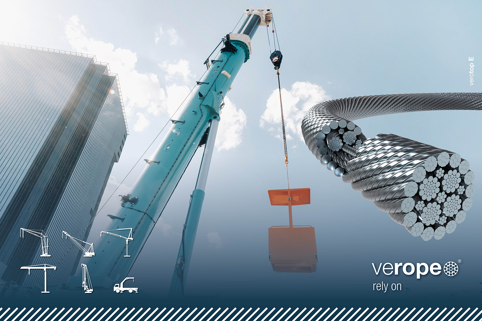 Das Kranseil hat eine sehr gute Verschleißfestigkeit und zeigt ein hervorragendes Spulverhalten auf mehrlagiger Seiltrommel.