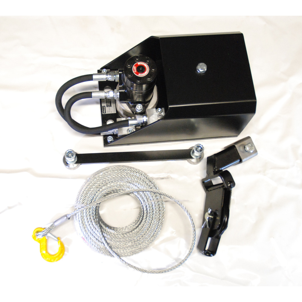 Die Winde ist vormontiert in einem Metallgehäuse - einfach an ein doppeltwirkendes Steuergerät anschließen.