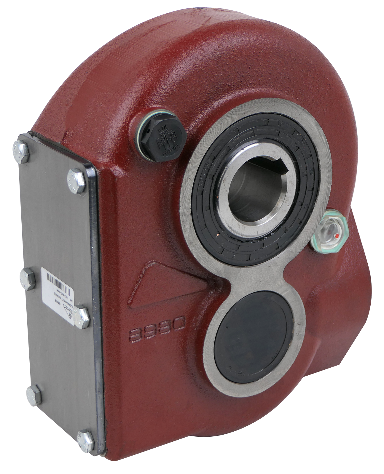 Kratzboden werden in der Landtechnik vielfach mit einem hydraulischen Antrieb über einen Ölmotor, in Verbindung mit einem Kratzbodengetriebe, angetrieben. Diese Antriebe findet man in Ladewagen, Stalldungstreuer und auch in Häckselwagen. Hierzu werden Getriebe mit einer hohen Untersetzung und einem hohen übertragbaren Drehmoment verwendet. Die Getriebe werden mit unterschiedlichen Durchmesser für die Antriebswelle geliefert. Auf der Eingangsseite wird ein Hydraulikmotor mit einem Wellendurchmesser von 25 mm und einem SAE-A Flansch verwendet. Die Auslegung des Hydraulikmotors richtet sich nach der erforderlichen Drehzahl an der Kratzbodenwelle und der zur Verfügung stehenden Literleistung der Hydraulikpumpe.Im allgemeinen führen Drehmomentspitzen bis zum 2-fachen des Nenndrehmoments zu keiner Beschädigung der einzelnen Getriebebauteile. Vollständige Unversehrtheit kann jedoch nur durch eine geeignete Sicherheitsvorrichtung gewährleistet werden. Lieferung ohne Ölmotor!