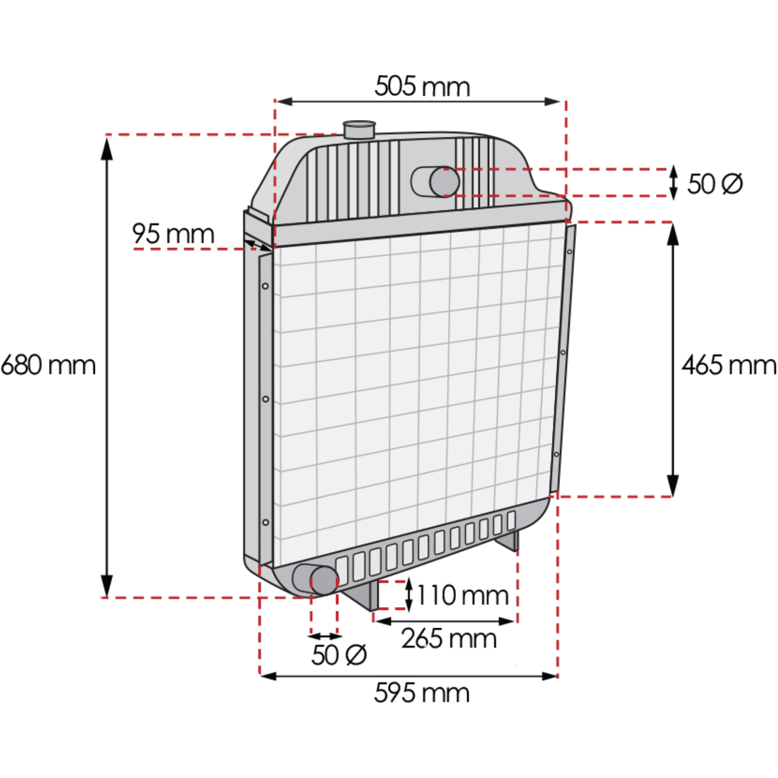 Gesamthöhe: 770 mm,Gesamtbreite: 598 mm,Stärke: 95 mm,Einlauf: Ø 50 mm,Auslass: Ø 50 mmPasst ab Seriennummer: B246029