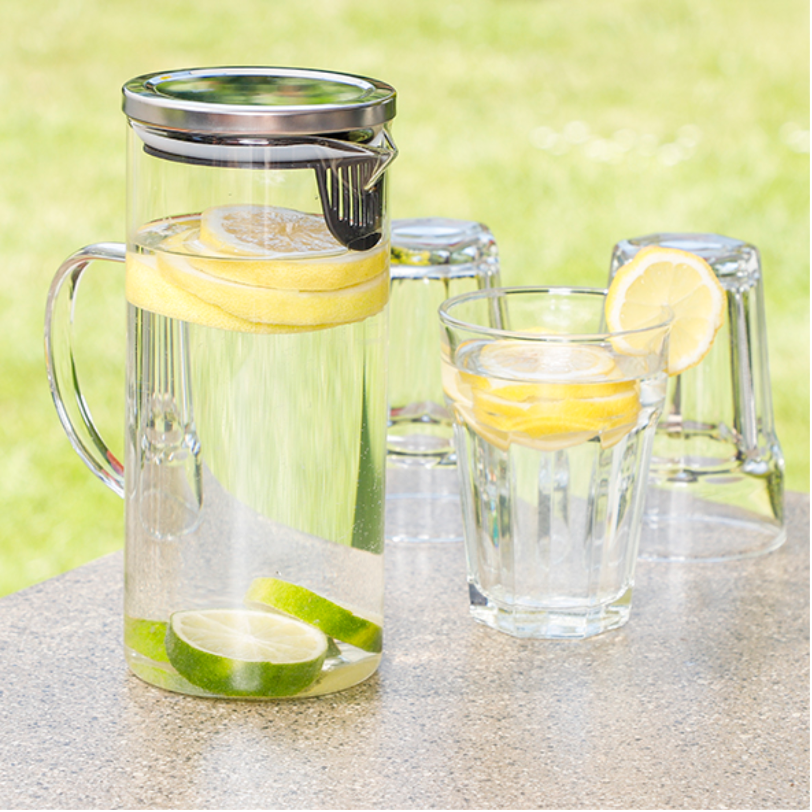 Ob Wasser, Saft oder Eistee – der robuste Krug passt dank seiner schlanken Form ideal in jede Kühlschranktür.Der hochwertige Aluminiumdeckel schützt den Inhalt vor äußeren Einflüssen und hält ihn länger frisch.