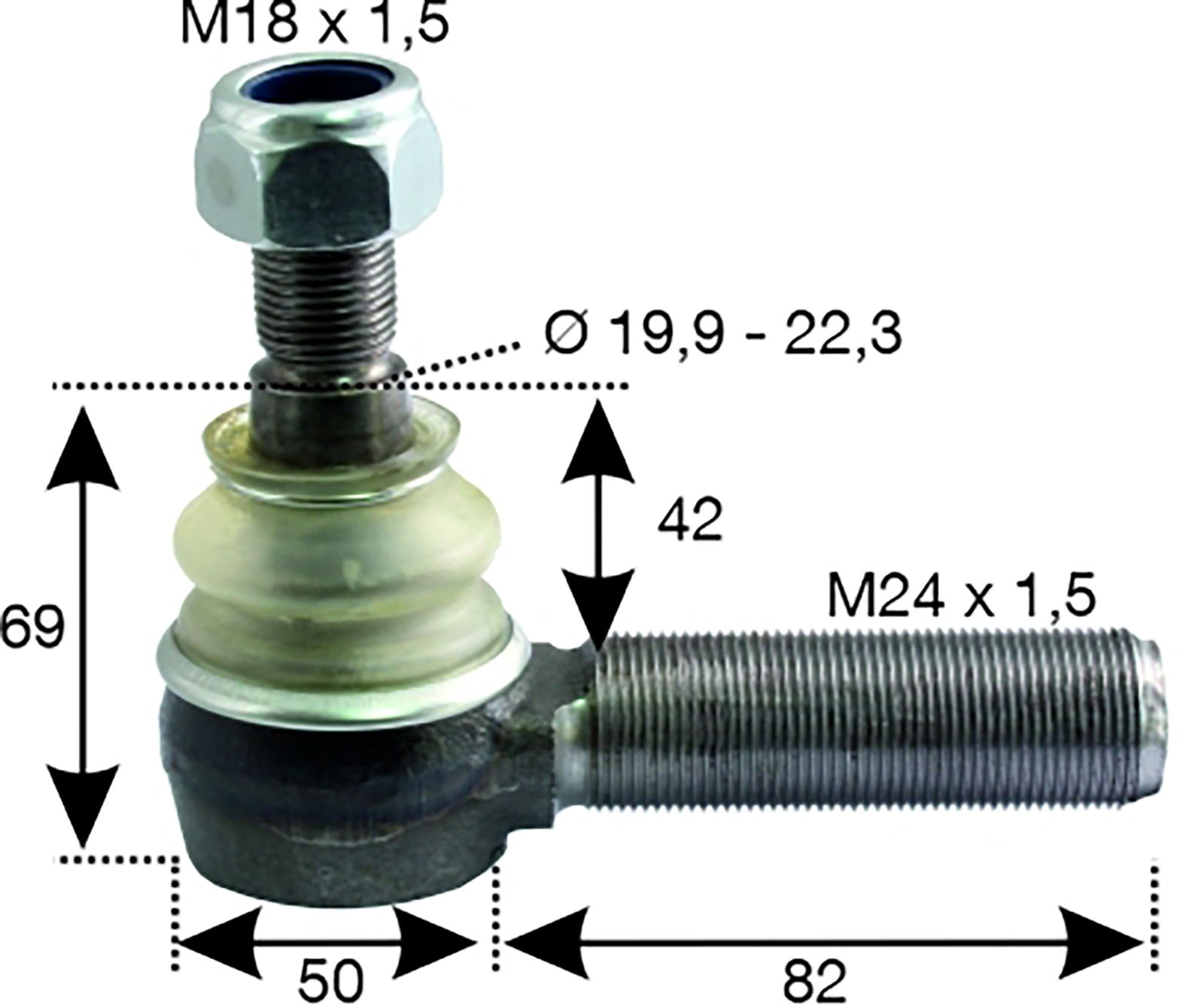 Produktinformationen "Kugelgelenk M24x1,5R Konus 19,9-22,3"