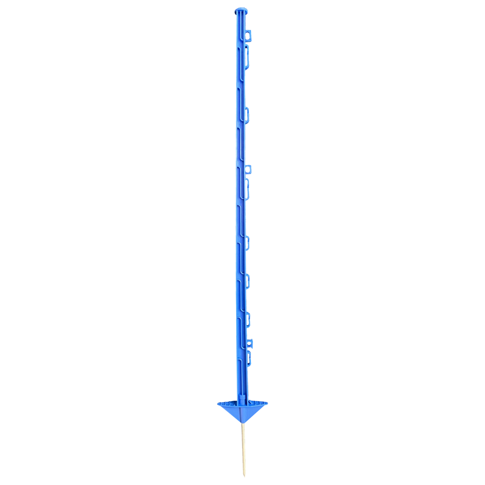 Blauer Kunststoffpfahl mit Doppelauftritt. Gesamthöhe 150 cm. Aus stabilem PP-Glasfaser-Kunststoff. Bodennagel verzinkt 17cm. Bandösen: 5x 20 mm, 4x 40 mm, Seilösen: 5x 10 mm. 10er BundFAIETIPP: Die Farbe blau wirkt abschreckend gegenüber Wild. Daher sind diese Pfähle (am besten in Kombination mit blauem Leitermaterial) ideal auch als Schutzzäune gegen Reh und Wildschwein geeignet!