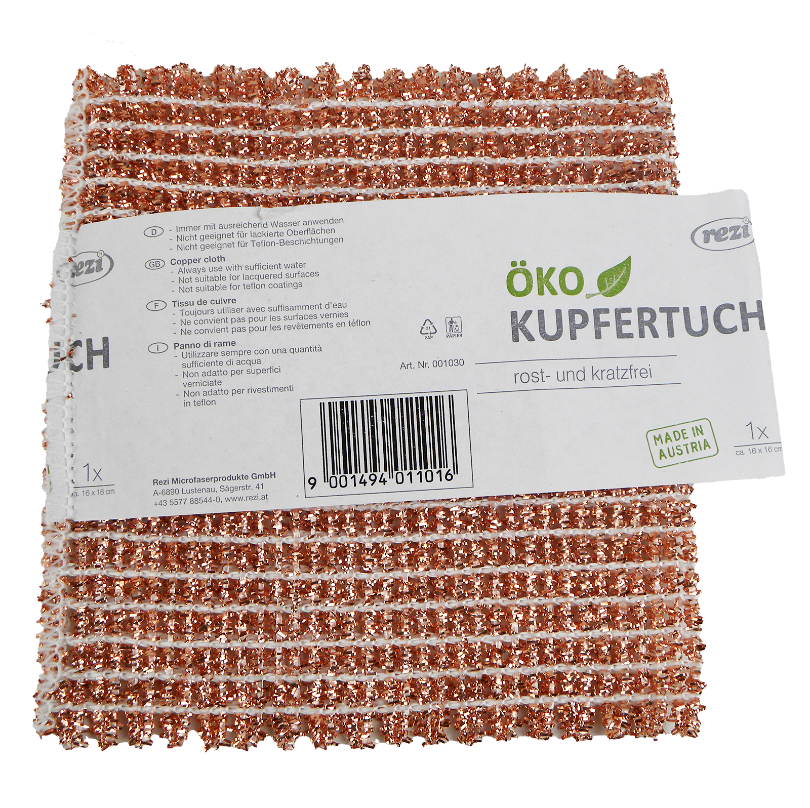 Eigenschaften: Großes gewirktes Kupfertuch Made in Austria für die kratzfreie Scheuerreinigung. Herkömmliche Reinigungsprodukte wie z. B. Schwämme oder Tücher benötigen fürdie Scheuerreinigung ausreichend Chemie, im Gegensatz dazu funktioniert die kratzfreie Scheuerreinigung mit Kupferprodukten ganz ohne Chemie. So haben Sie eine effektive Reinigungsmethode und schonen gleichzeitig die Umwelt.Anwendung: Die Kupferprodukte immer ohne Chemie und mit ausreichend Wasser verwenden. Vor dem ersten Gebrauch an einer unauffälligen Stelle testen.
