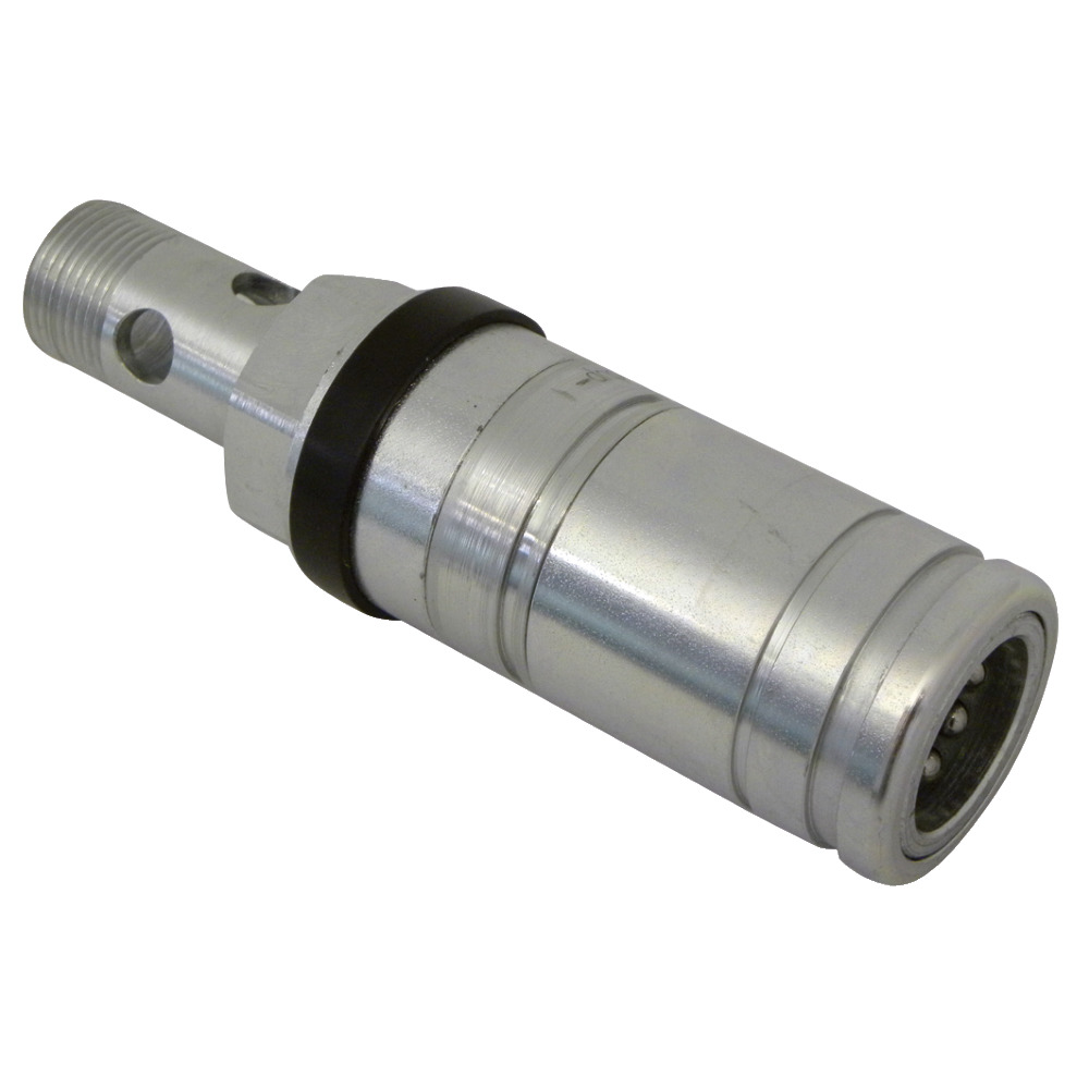 Für die zusätzliche Montage eines Ringauges mit Innen-Ø 22 mm. Die Gesamtlänge der Kupplung inklusive Anschlussstutzen für das Ringauge und das Einschraubgewinde ist 134,80mm.Passend zu Case-IHC, Deutz, JCB-Fastrac, MF, New Holland, Steyr, Valmet, Zetor. Unter Druck kuppelbar!