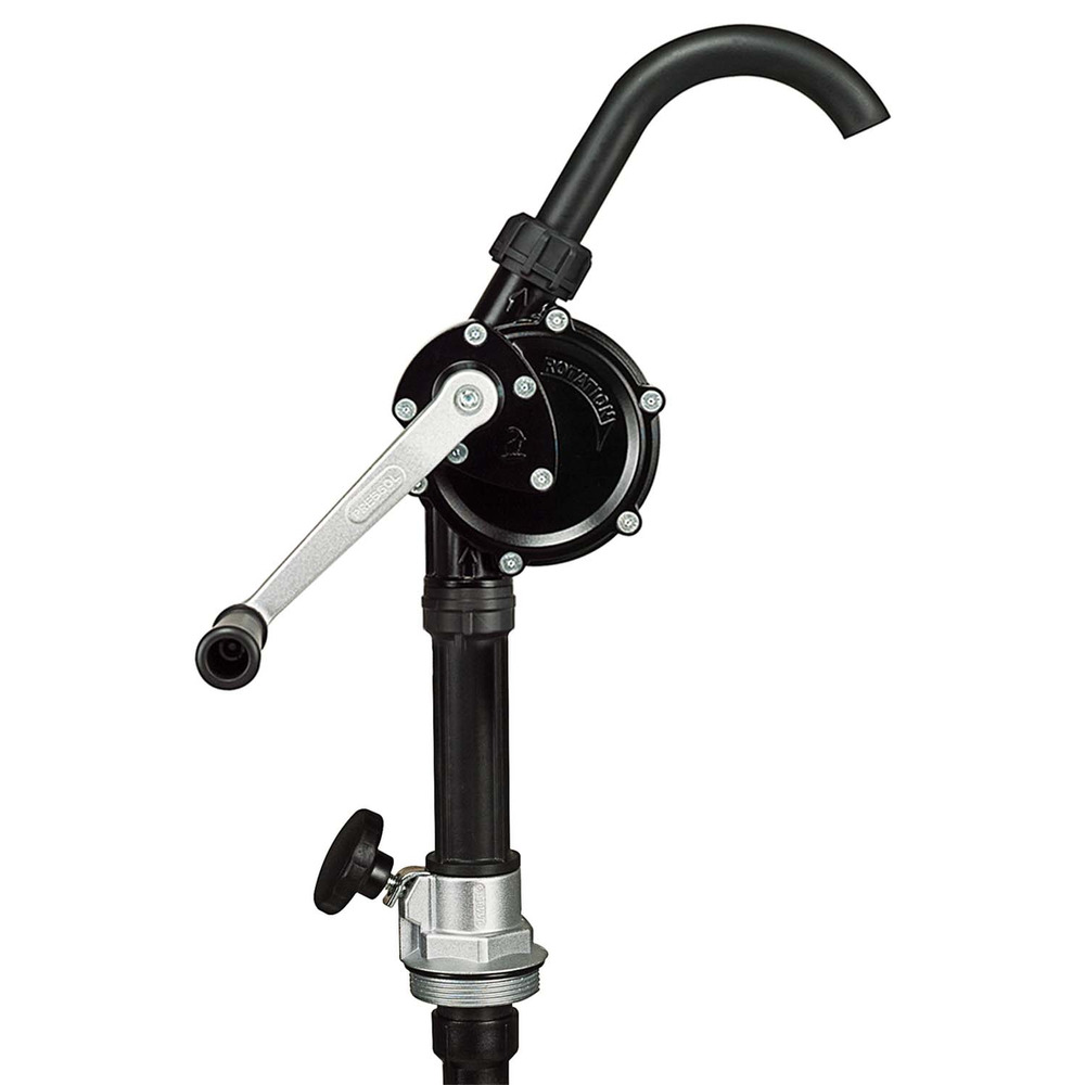 Hochwertige Kurbelpumpe entwickelt und hergestellt von Pressol. Leichtgängiger Drehbetrieb durch hochwertige Bauteile und ein optimales Übersetzungsverhältnis. Förderleistung bei 60 Umdrehungen ca. 18 L/min (Diesel). Geeignet für selbstschmierende, nicht aggressive Medien wie Heizöl, Diesel, Petroleum und Öle bis SAE90. Durch das Teleskop-Saugrohr (355 - 955 mm) ideal für 60/200 und 220 L Fässer einsetzbar. Komplett mit Auslaufkrümmer und Fassverschraubung G2″.