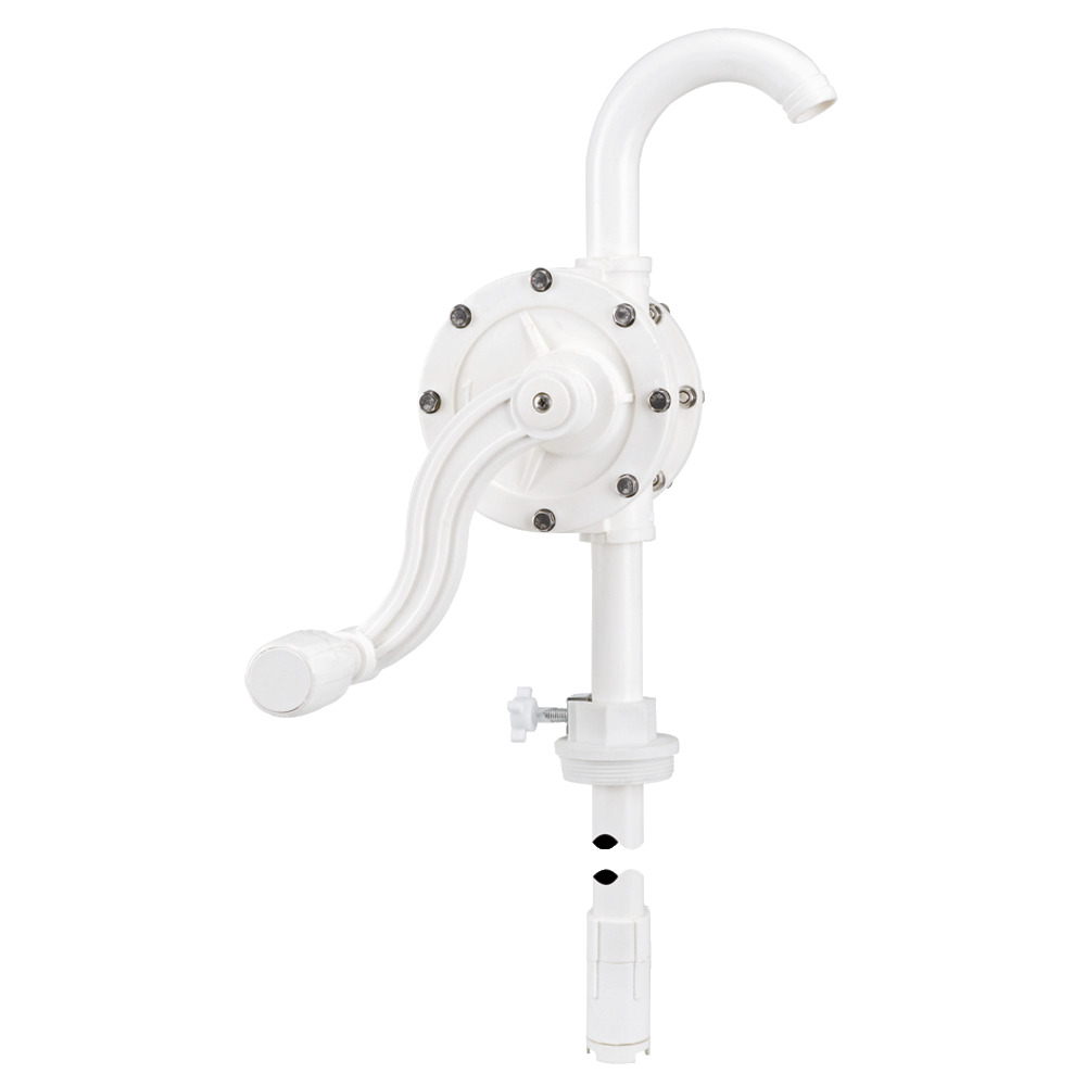 Profi Handpumpe mit ca. 22 L/min (0,18 L/Umdrehung) Förderleistung. Passend für alle gängigen 60/200/220 L Fässer mit G2“ Gewinde. Geeignet für dünnflüssige Stoffe wie Wasser, Scheibenklar oder AdBlue. Komplett mit Auslaufkrümmer 25mm AD.