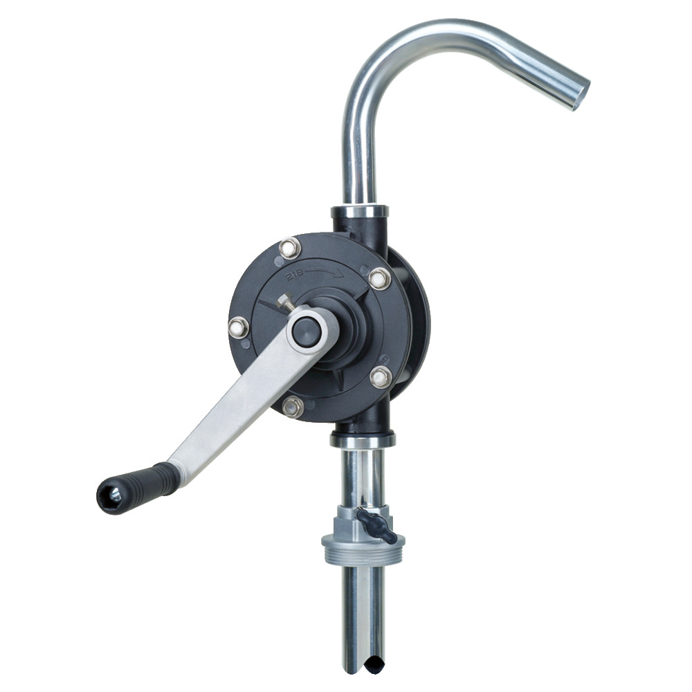Profi Handpumpe mit ca. 22 L/min (0,18 L/Umdrehung) Förderleistung. Passend für alle gängigen 60/200/220 L Fässer mit G2“ Gewinde. Saugrohr (1020 mm) und Auslauf 25mm AD aus Inox. Geeignete für Wasser, Diesel, Säuren und Laugen