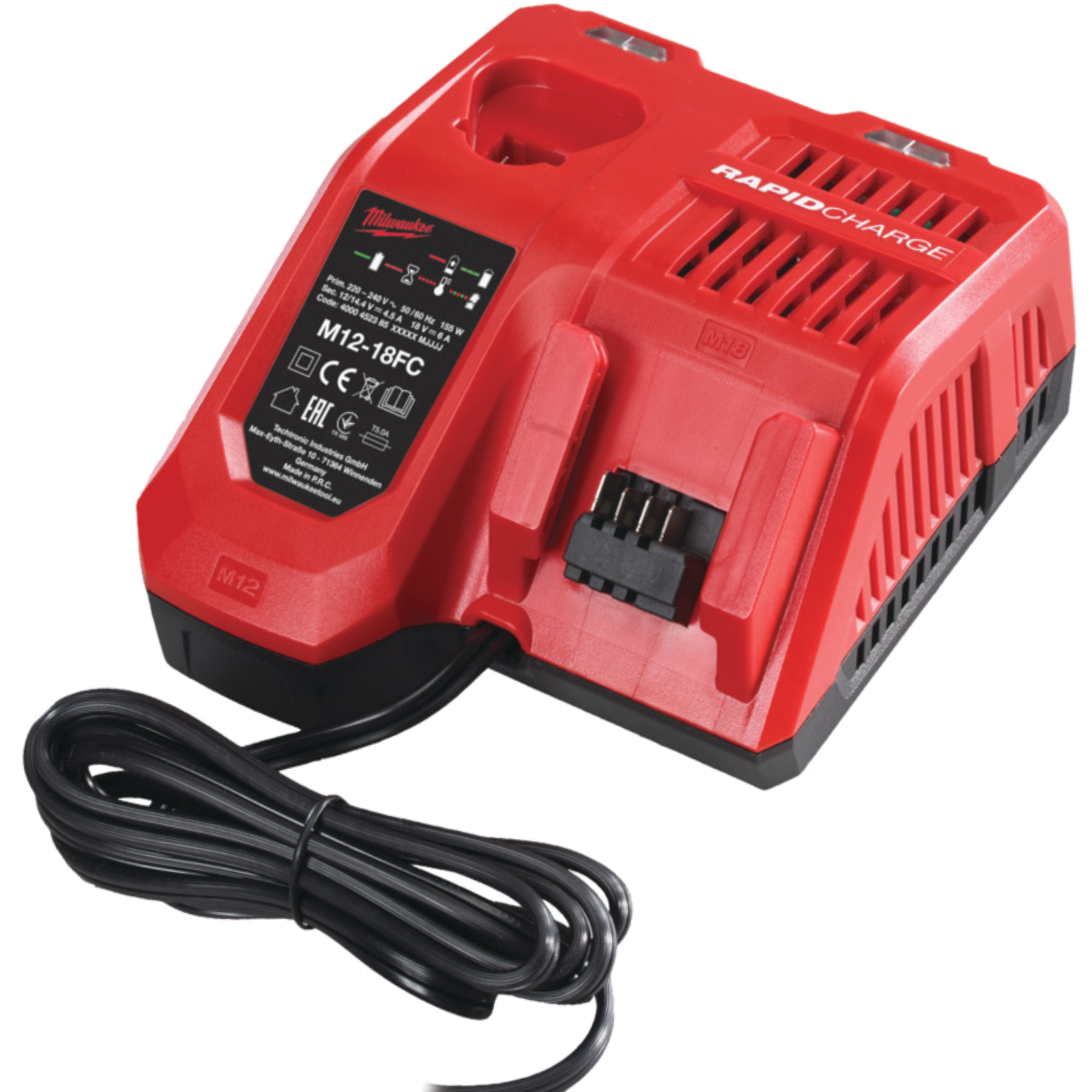 Universal 230 Volt Ladegerät passend für alle Milwaukee 12 und 18 V Akkus.