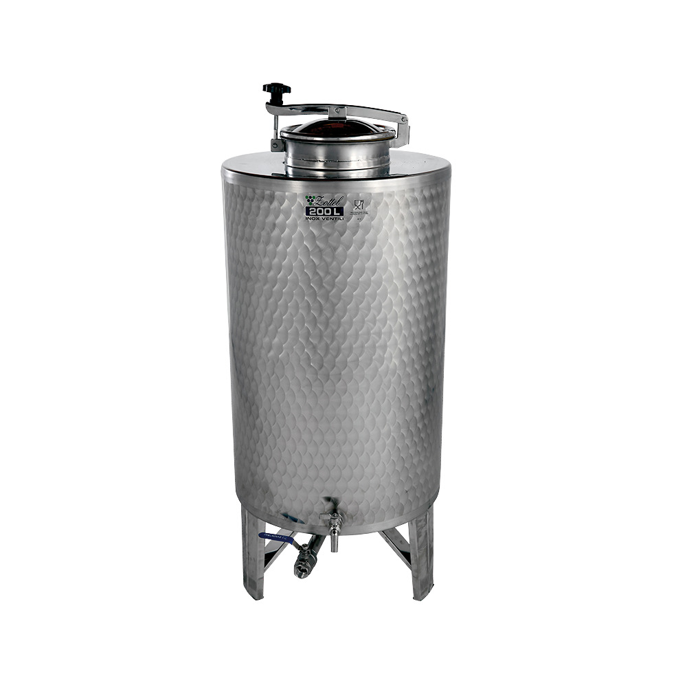 Geeignet z. B. für Öl und Schnaps. Edelstahlbehälter (V2A) mit angeschweißten Füßen, Domdeckel mit Dichtung und Sicherungsschraube zum hermetischen Abschluss von der Umwelt, Auslaufhahn ¾“, Restablauf am Behälterboden mit Kugelhahn 1″(weitere Größen auf Anfrage)Auslaufhahn Außendurchmesser 18 mm