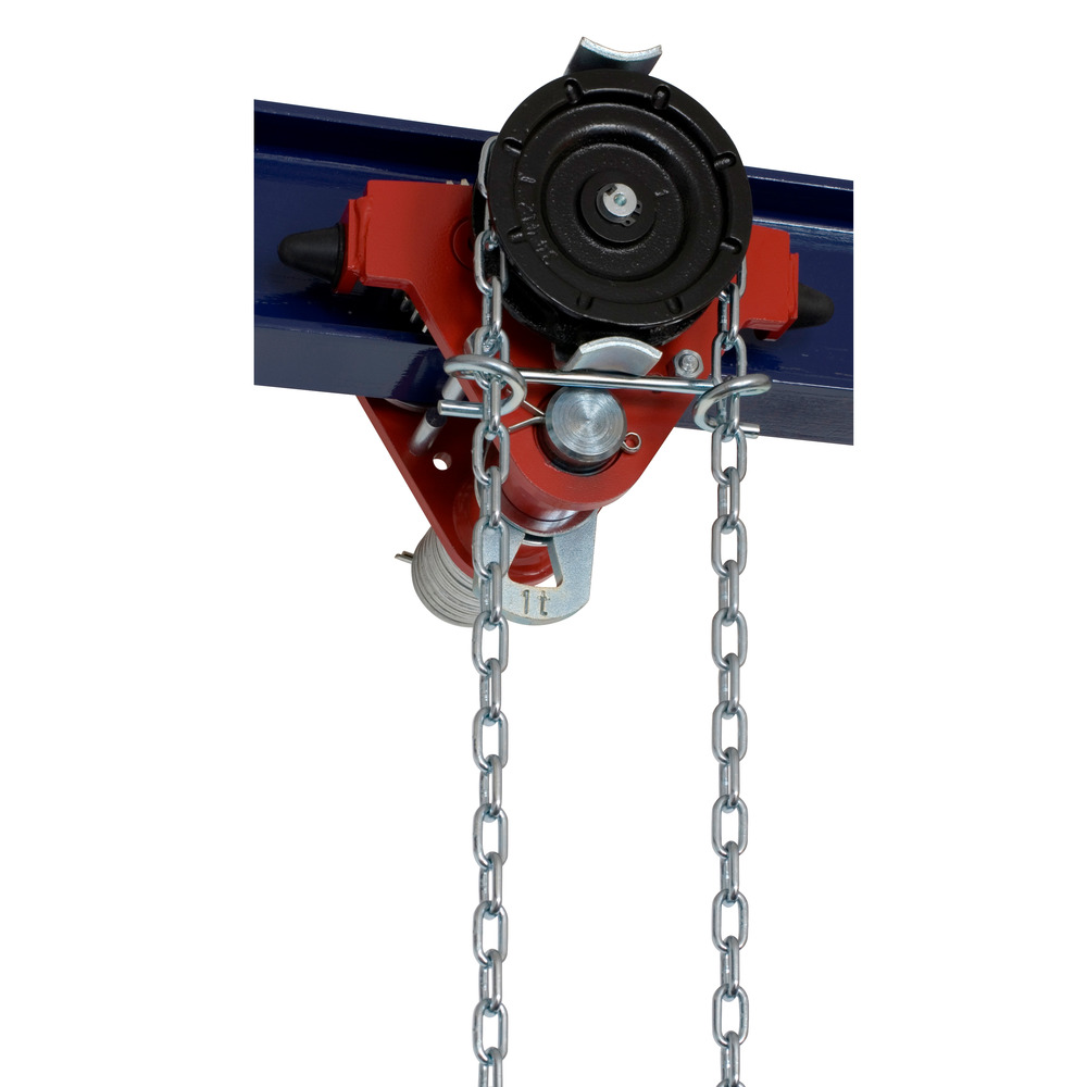 Hochwertige Laufkatze in Industriequalität, mit handbedientem Fahrwerk und Sicherheitsstoßdämpfern. Einfach zu bedienen, sehr wartungsarm und flexibel einsetzbar. Für alle genormten Träger IPE / HEA / HEB / HEM. Mit Kettenlänge 3 m, Sonderlängen bis 12 m auf Anfrage. Leichte, aber dennoch höchst robuste Ausführung.