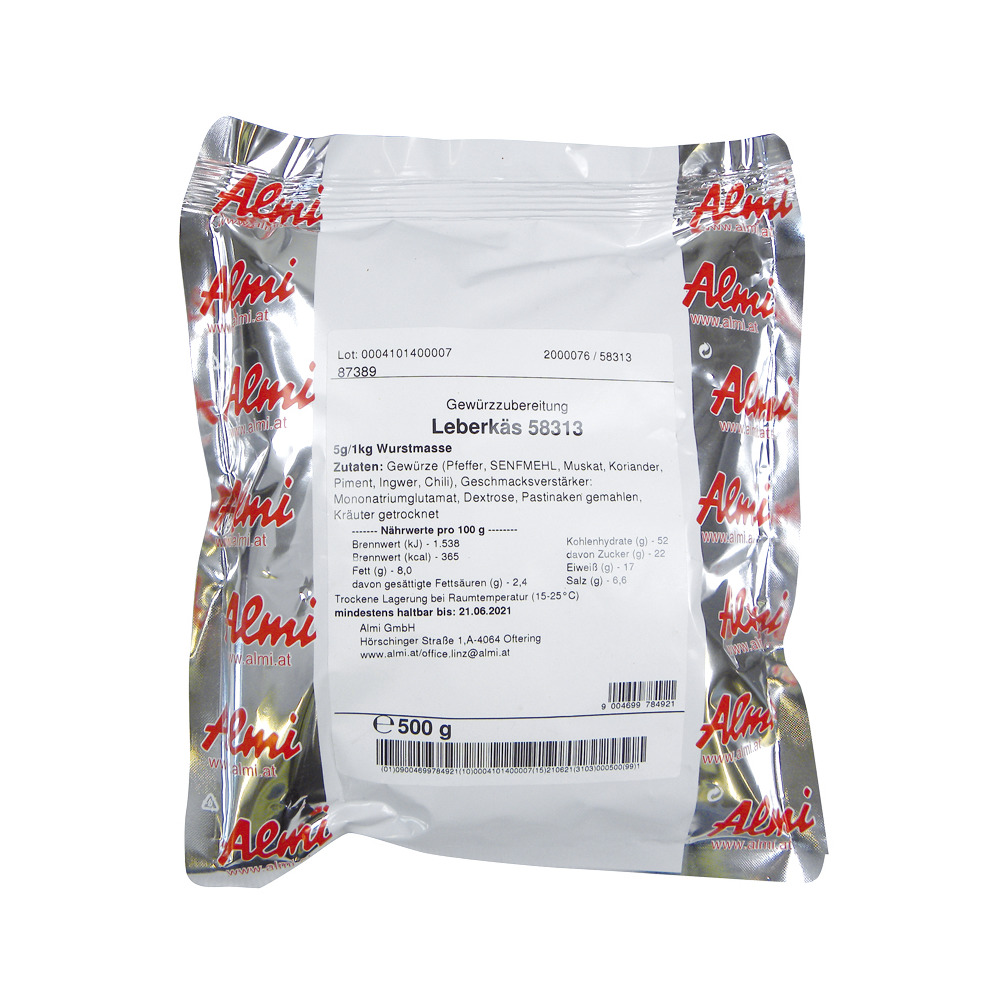 Qualität von höchster Güte, aromageschützt verpackt. Hochwertige Rohstoffe sind die Basis für erstklassige Produktqualität.0,5 kg, 5 g/kg Wurstmasse.