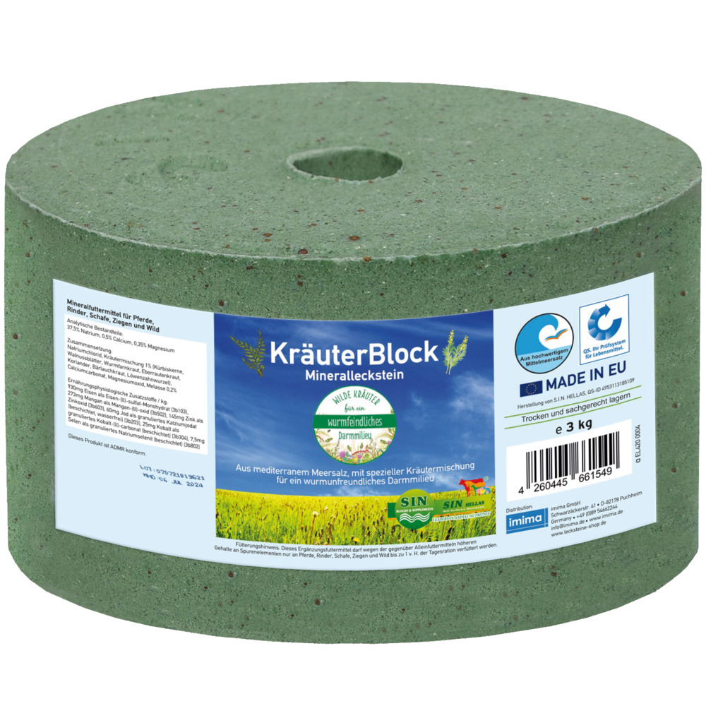 Kräuter-Mineralleckstein für ein wurmunfreundliches Darmmilieu, für Rinder, Pferde, Schafe, Ziegen und Wild.