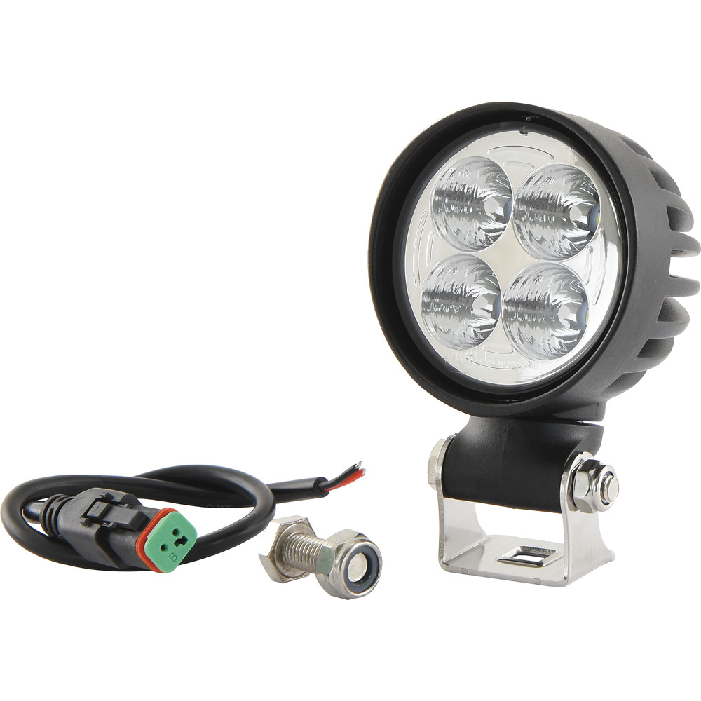 hochwertiger Arbeitsscheinwerfer 10-30 Volt, 20W, DT AnschlussBreitstrahler 60°, IP69K, ECE R10-E4, EMC zertifiziertAluminiumdruckguss Gehäuse, Größe BxTxH:72x126x84mmKabellänge ca. 400mm