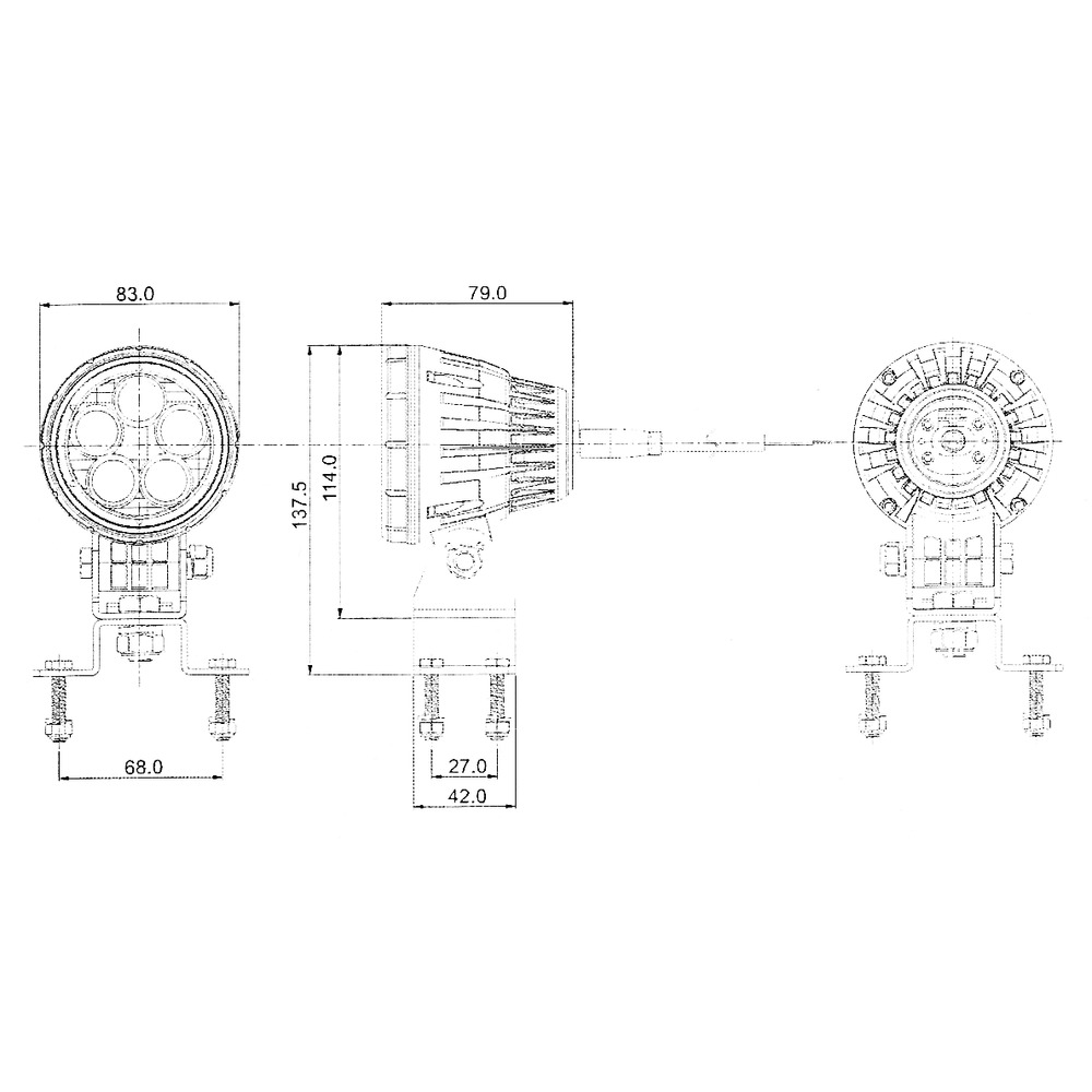 LED-Arbeitsscheinwerfer mit Aluminiumdruckgussgehäuse, optimale Wärmeableitungpassend für Steyr CVT, Case CVXTechnische Daten:10-36V, 25WTemperaturbereich: -40°C bis 80°CSchutzart: IP68K1800LumenPolycarbonat-LinseVibration Rating: 15GAnschlusskabel: ca. 20cmBreitstahler 60°EMC, RoHSBxHxT: 83x138x79mm