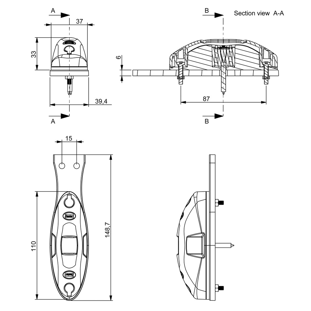 10-30V, Rücklicht/Positionslicht, Seitenmarkierung, rot/weiß gelbHalterung gerade, Kabel 1000mm, ECEMaße BxHxT: 39x148x40mm