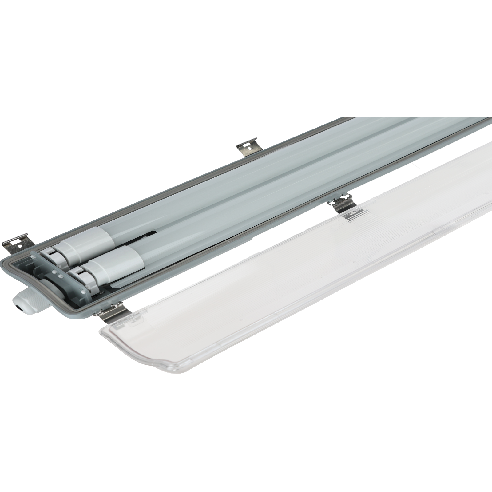 Die Wannenleuchte bietet eine effiziente und zuverlässige Beleuchtungslösung für feuchte und anspruchsvolle Umgebungen. Mit strahlwassergeschüttertem Gehäuse, Edelstahl-Montageclips und aus robustem ABS- und PC-Kunststoff gefertigt, ist sie extrem robust und widerstandsfähig.