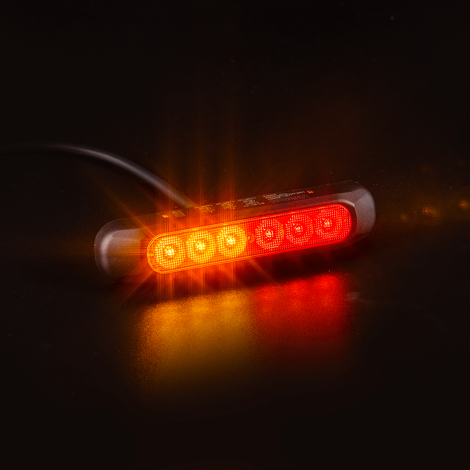Technische Daten:Funktionen: Schluss, Brems- BlinklichtBetriebsspannung: 12/24 VSchutzart: IP68Zulassung: E9, EMCMaterial: Kunststoff (PC)Maße: 120 x 90 x 30 mm