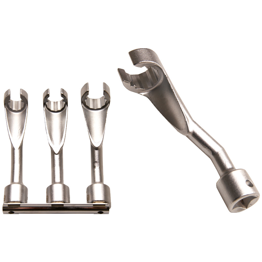 Der Leitungsschlüssel Satz der bei keinem Mechaniker fehlen darf. Geeignet für Dieseleinspritzleitungen und andere Leitungsverschraubungen. Länge: 119 mm. Größen 14, 17, 19 mm.