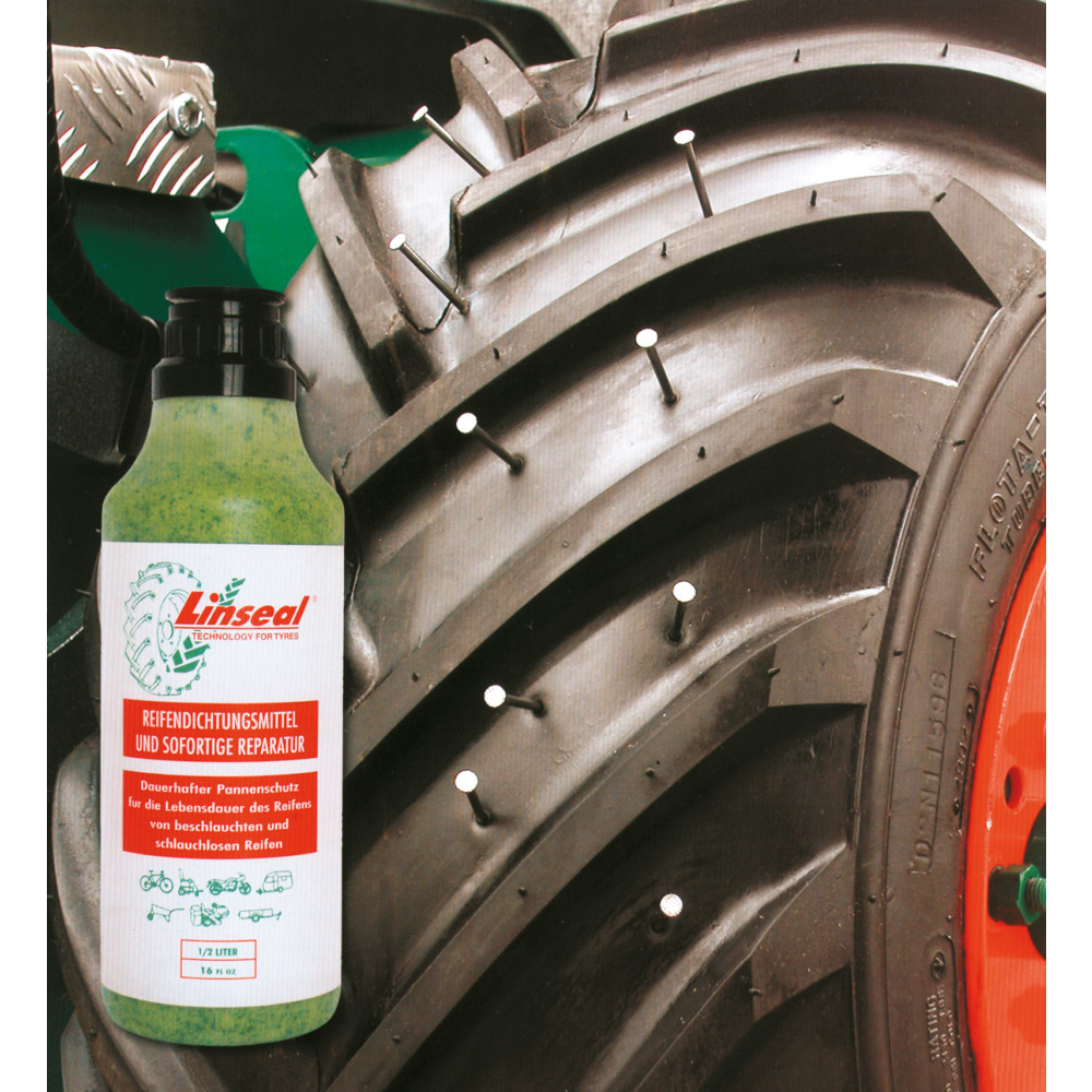 Bei Linseal handelt es sich um keinen Kleber, sondern um eine wasserlösliche Flüssigkeit, welche Gummipartikel beinhaltet. Die Partikel verkeilen sich rein mechanisch im gespaltenen Gummi und dichten so, abhängig vom Reifenaufbau, Durchstöße von bis zu 15 mm Gegenstand-Ø und auch Luftverlust zwischen Reifen und Felge ab. Linseal wird über den Ventilstock in den Reifen bzw. Schlauch eingefüllt.Eigenschaften:- wiederverwendbar- anwendbar bis -25°C- ungiftig- klebt nicht- bleibt flüssig- mit Wasser abwaschbarEinsatzbereich:Landwirtschaft allgemein, Industriemaschinen, Baumaschinen, Gartengeräte, Schubkarren,... alle Luftreifen außer Fahrzeuge über 80 km/h. Beschlauchte Reifen müssen vorbeugend befüllt werden. Schlauchlose Reifen können vorher oder nachher befüllt werden.
