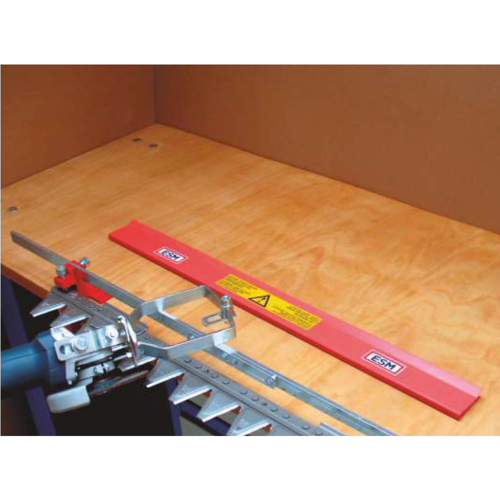 Jetzt mit universal verwendbarem Schleifvorsatz für handelsübliche Winkelschleifer mit Schleifscheibendurchmesser 125 mm. Funktion und einfachste Handhabung bestimmen das Konzept der ESM Service-Station. Alle ESM Messertypen können mit einem Klingenschneidenwinkel bis 40° exakt geschärft werden. Die in allen Ebenen einstellbare Aufnahme des Schleifvorsatzes ermöglicht die Adaption an Winkelgetrieben von Winkelschleifern unterschiedlichster Hersteller.Als Zusatzproduktnutzen bietet die ESM Service-Station die Möglichkeit der Aufnahme von ESM-Mähbalken, um Wartungsarbeiten daran durchführen zu können.Die ESM Service-Station besteht aus zwei Spannvorrichtungen, dem Mähmesserschleifvorsatz für Winkelschleifer mit Schleifscheibendurchmesser 125 mm, und einer Führungsschiene. Auf jeder handelsüblichen Werkbank lassen sich die Komponenten unproblematisch und schnell fixieren. Bei dauerhafter Verwendung wird die geschraubte Befestigung der Spannvorrichtungen über deren zusätzliche Auflageplatten zur Tischauflage empfohlen.Der Schleifvorsatz wird auf die baulichen Gegebenheiten des jeweilig verfügbaren Winkelschleifers justiert, nachdem der Handgriff des Winkelschleifers abgeschraubt wurde. Dabei ist die Anpassung des Vorsatzes in Höhe, Breite, Tiefe sowie Winkel möglich.Das Mähmesser wird in der Spannvorrichtung durch zwei Schrauben gesichert, der Winkelschleifer mit Vorsatz auf die Führungsschiene aufgelegt und durch Vor- und Zurückbewegung mit seiner Schleifscheibe an der Klingenschneide entlang geführt.Die Winkeleinstellung im Gelenkpunkt des Schleifvorsatzes sichert einen wiederholgenauen, winkeltreuen Schliff der Klingen und somit eine optimale Klingenschärfe.Lieferumfang: 2 Spannvorrichtungen, 1 Führungsschiene, 1 Mähmesserschleifvorsatz für Winkelschleifer mit Schleifscheibendurchmesser 125 mm