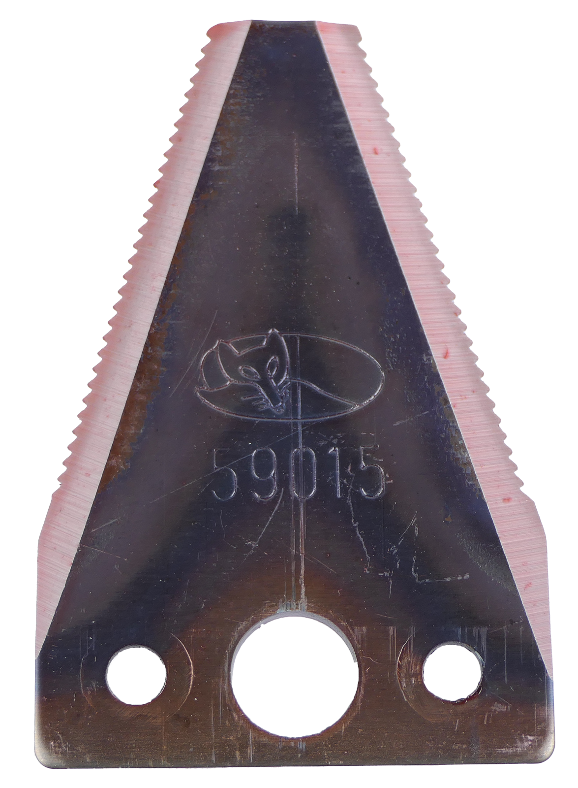 Mähmesserklinge aus österreichischer Produktion. Die Nietenbohrungen haben an der Unterseite eine Senkung.