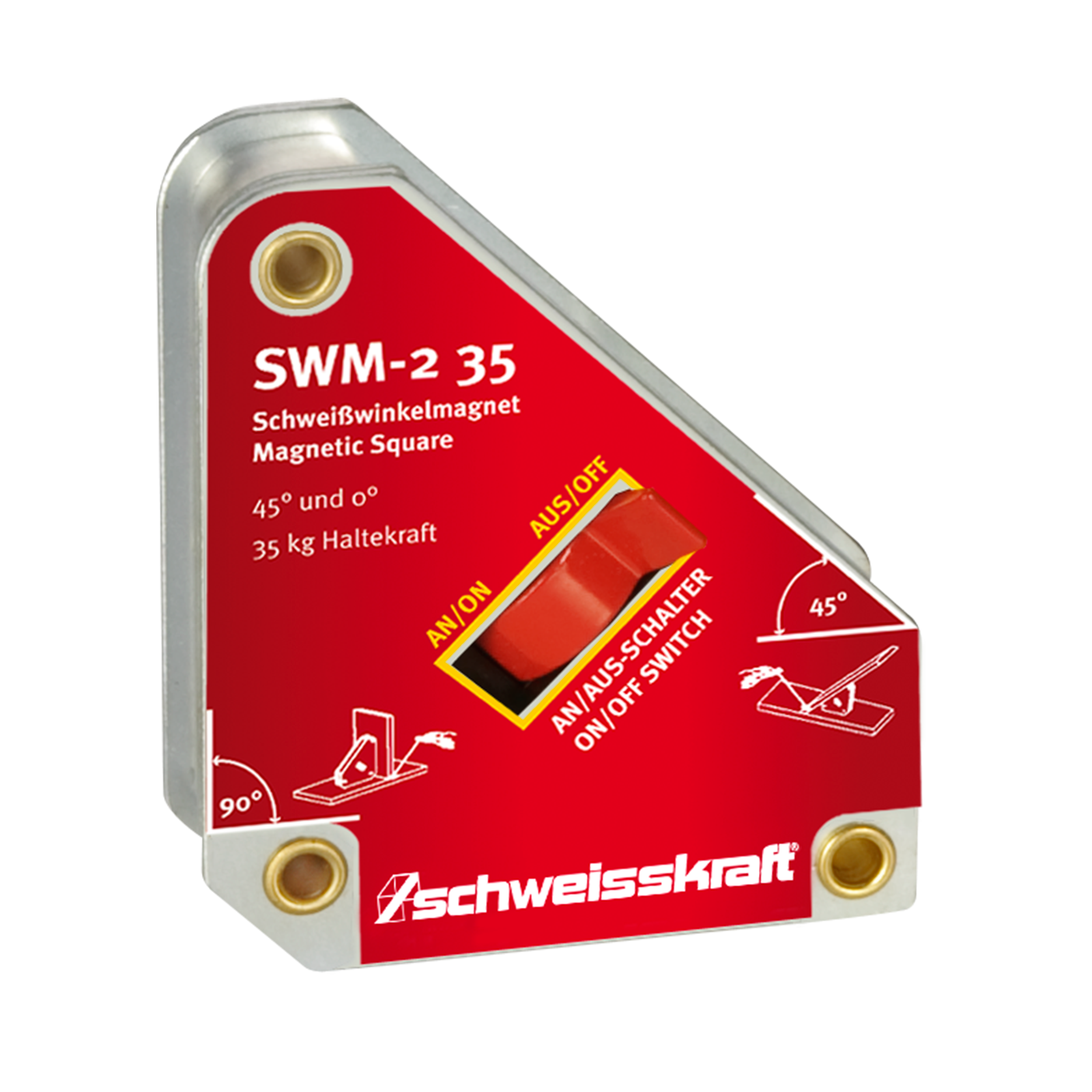 Profi Magnethalter mit ein-ausschaltbarem Magnetismus, daher leichtes Einrichten der Werkstücke und einfache Reinigung. Geeignet für Flachwinkel und Rundmaterial. Schwere Ausführung mit 40 kg Haltekraft. Maße 95x110x29 mm.