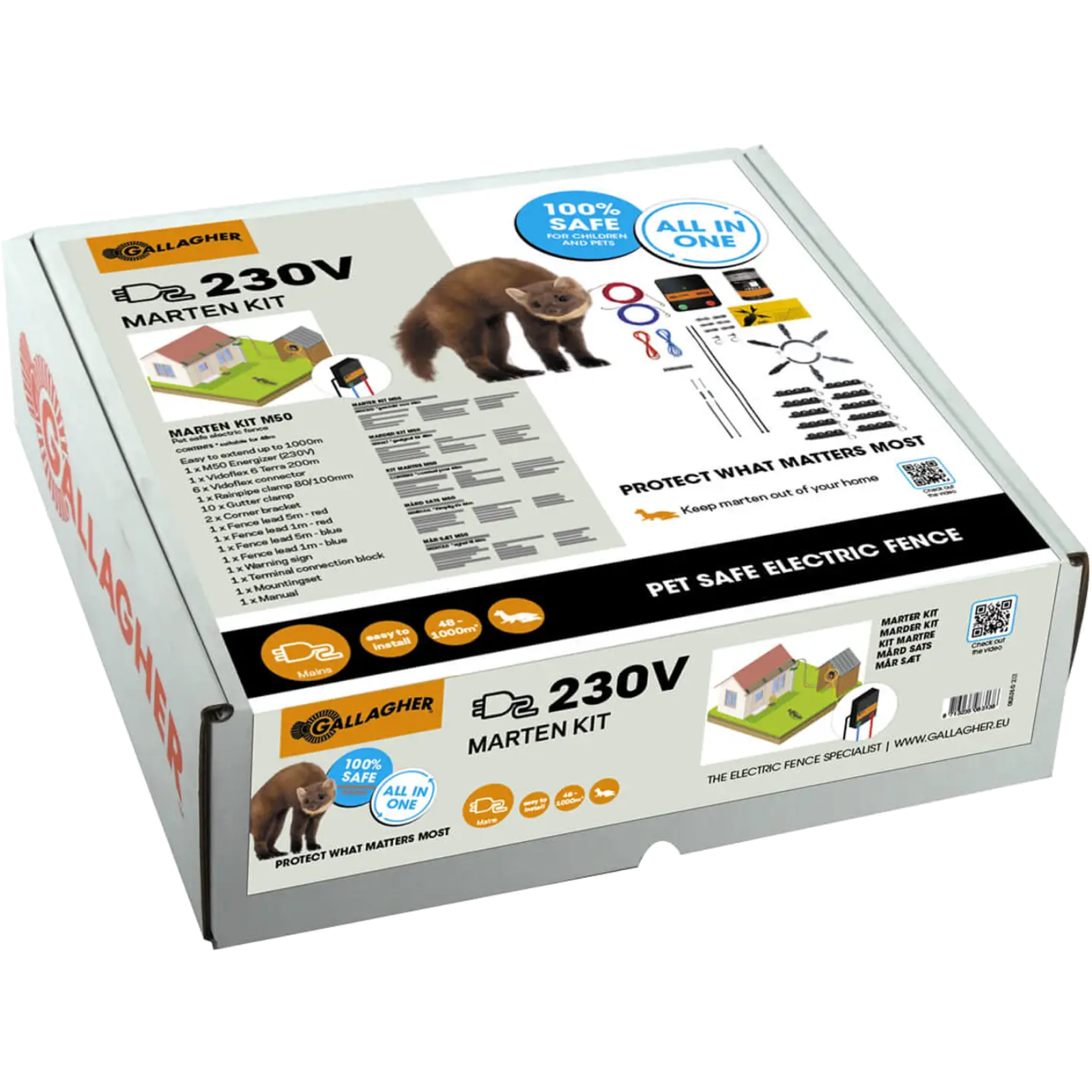 Basisset zum Schutz vor Mardern oder Waschbären auf Dachböden.Mit einem guten Elektrozaun wird es Marder oder Waschbär erschwert in den Dachboden einzudringen und teils schwere Schäden zu verursachen.(Anleitung und Details siehe Downloads)Set bestehend aus:Weidezaungerät M50 230 V200 m Litze (Farbe terra)1 Regenrohrschelle inkl. Isolatoren10 Dachrinnenisolatoren6 Drahtverbinder1 Anschluss-Set1 Warnschild1 Montage-SetAnleitung