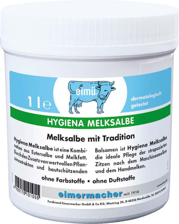 Eine Kombination aus Eutersalbe und Melkfett. Durch den Zusatz von wertvollen Pflanzenextrakten und hautschützenden Balsamen ist das die ideale Pflege der strapazierten Zitzen nach dem Melken. Ohne Farb- und Duftstoffe.