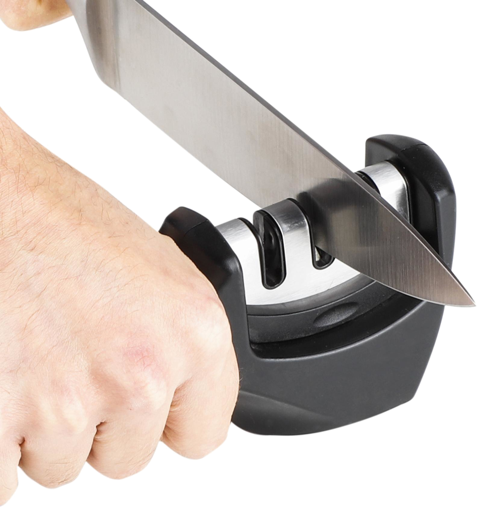 Effizientes 3-Phasen-System: Die Kombination aus Stahl (für den Grobschliff) und Keramik (für den Feinabzug und Polieren) sorgt für eine rasiermesserscharfe Klinge und eine lange Lebensdauer deiner Messer.