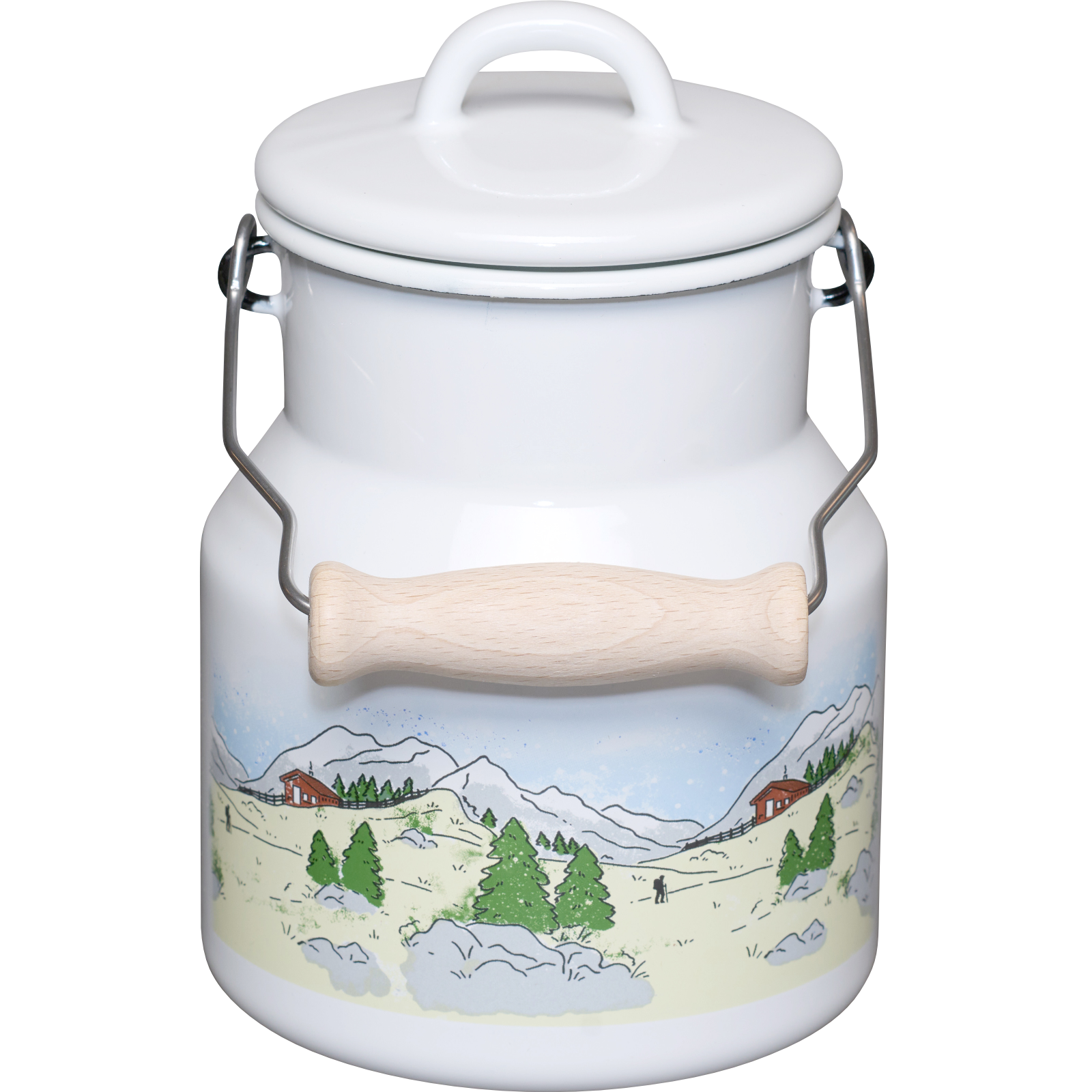 Produktinformationen " Milchkanne mit Emaille Deckel und Holzgriff "
