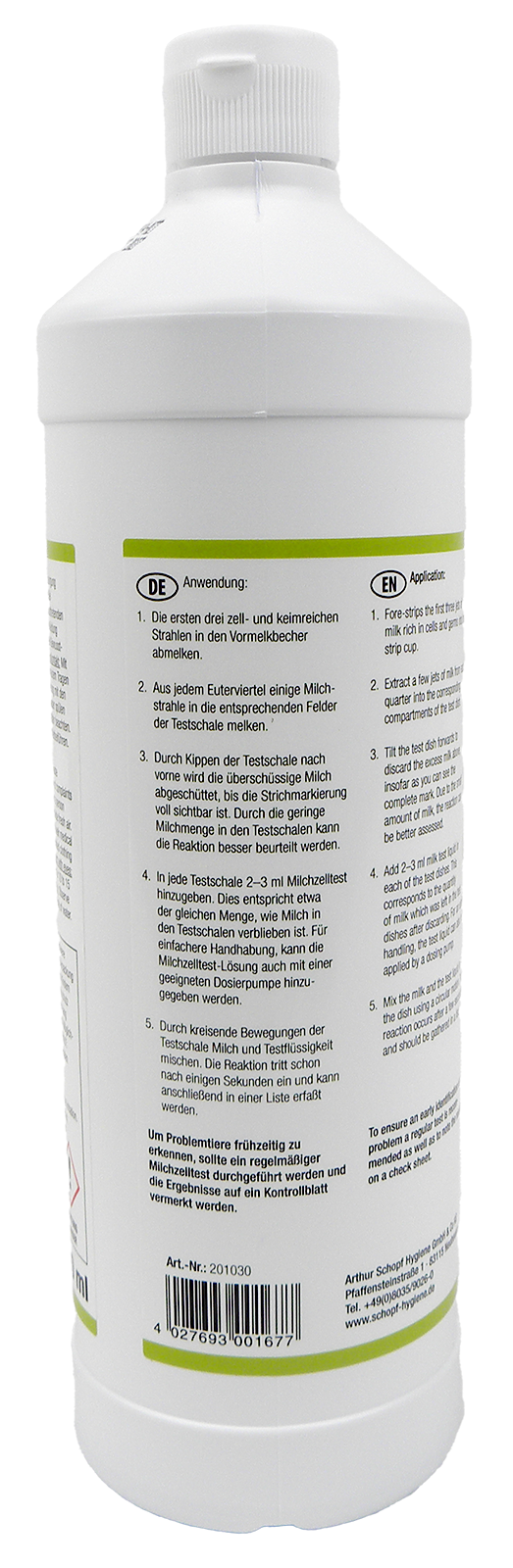 Milchzelltest Flüssigkeit zur Bestimmung des Zellgehalts in Rohmilch. Zelltest in 1000 ml Kunststoffflasche.