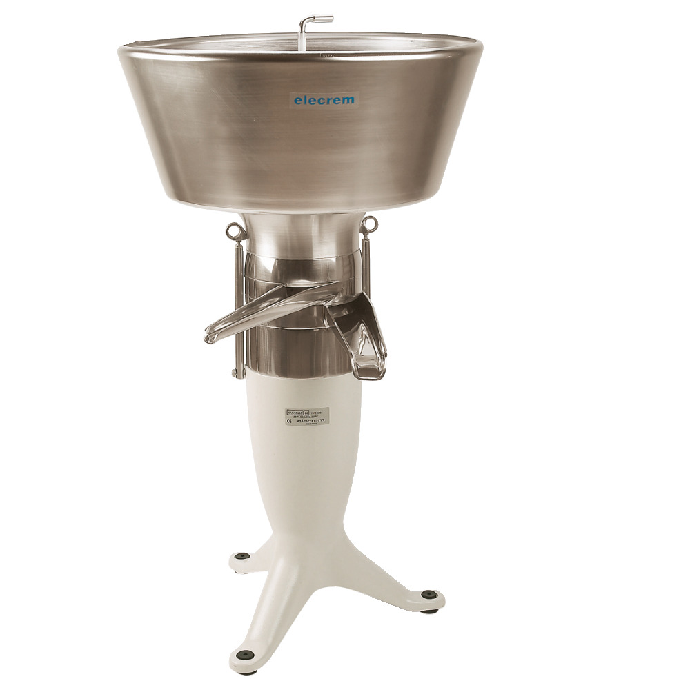 500 Liter Stundenleistung, zentral angeordneter Milchbehälter 50 Liter, mit Drehzahlregler, Gewicht 35 kg, 230 V, 250 W, Höhe mit Tank 101 cm, 6500-7500 U/min. Sämtliche Metallteile der elecrem-Milchzentrifugen, die mit Milch in Berührung kommen sind rostfrei. Dies ermöglicht eine problemlose Reinigung und ist besonders im Hinblick auf die Hygiene ein großer Vorteil. Elecrem Milchzentrifugen zeichnen sich seit Jahrzehnten durch hohe Zuverlässigkeit und Lebensdauer aus. Die ausgereifte Technik der elecrem Maschinen garantiert optimale und gleichbleibende Ergebnisse bei der Milchverarbeitung.