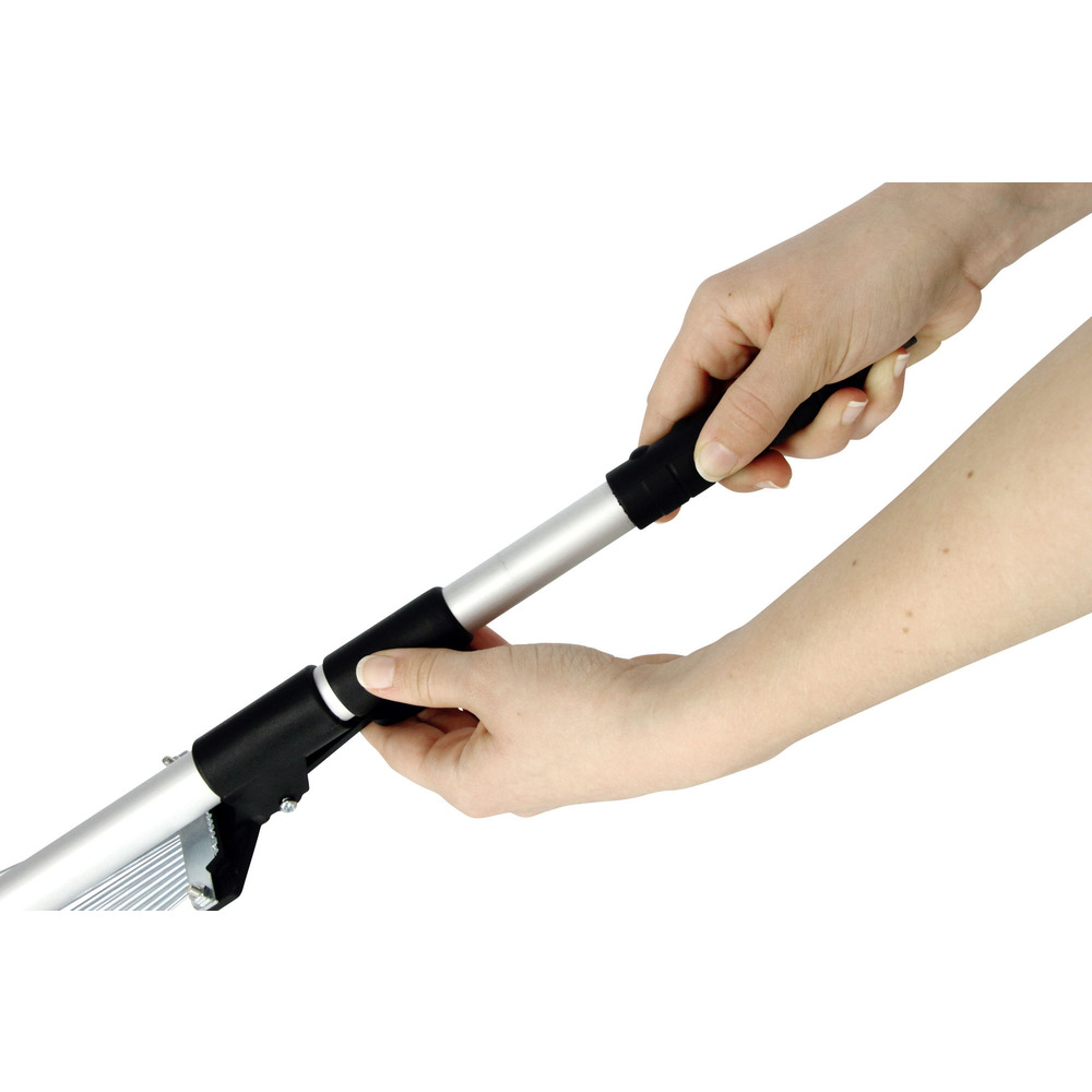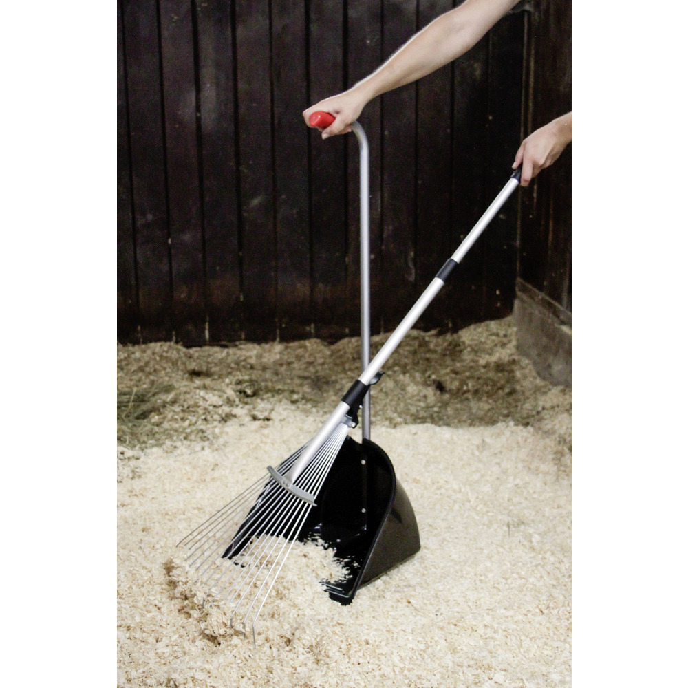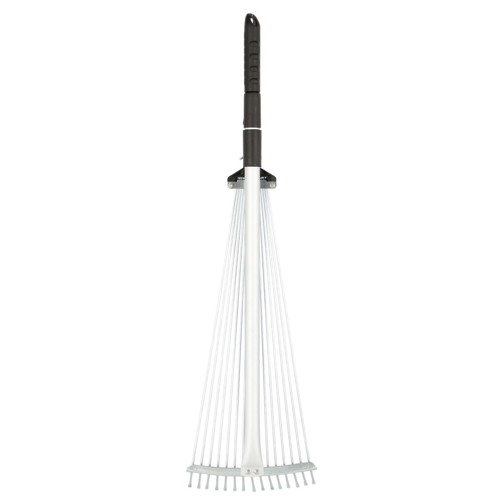 Multifunktionswerkzeug auch zum Verwenden für den Mistboy und als Universalrechen. Zinkenweite verstellbar zwischen 20 - 45 cm, mit Teleskopstiel, max. Länge 140 cm, 15 Zinken.