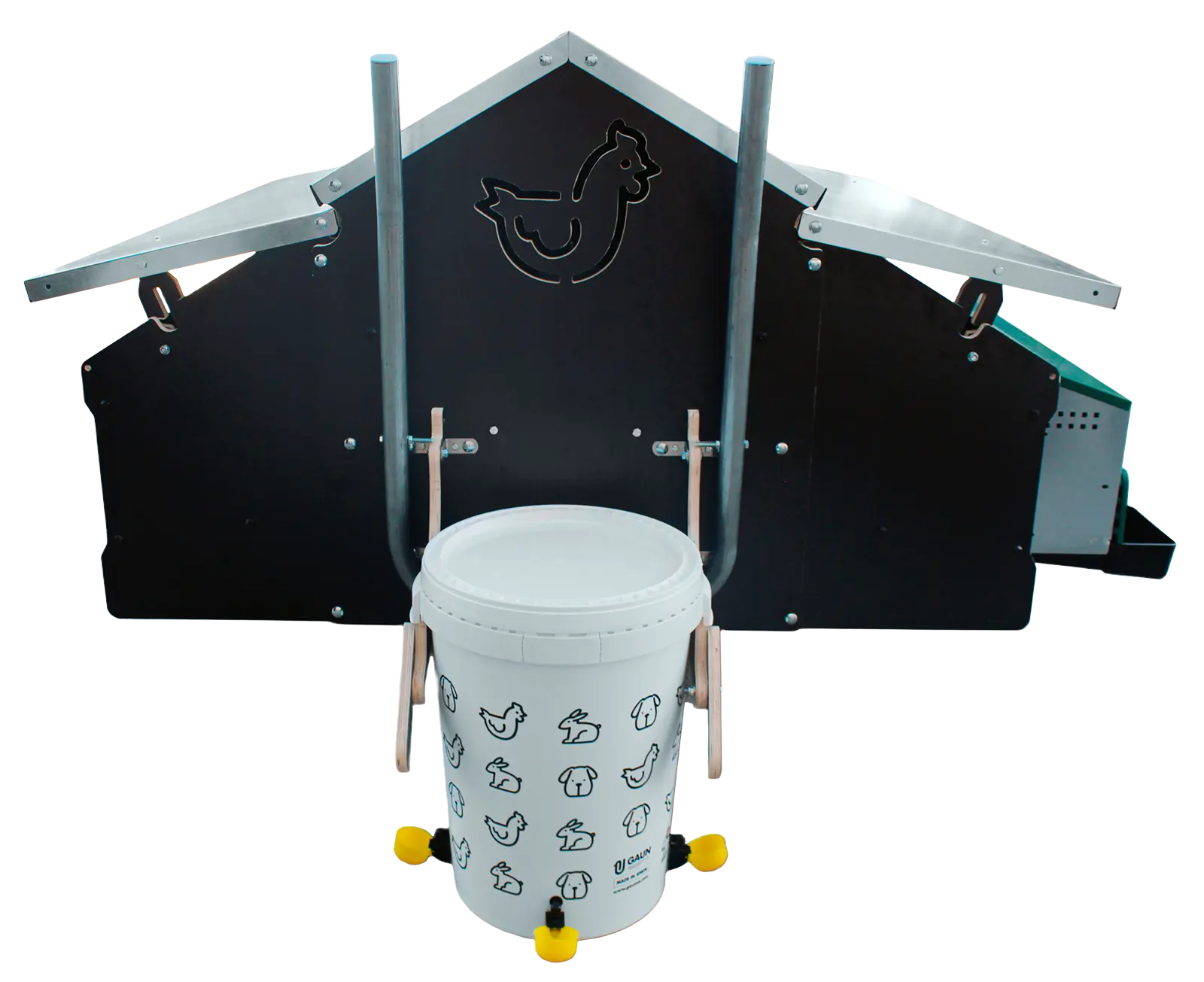- 4 integrierte Tränken mit einem 55 Liter Wassertank
