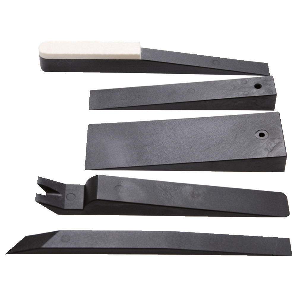 Das fünfteilige Montagekeil Sortiment, gefertigt aus einer Hartkunststoff-Nylonmischung, speziell für Arbeiten an der Verkleidung, Armaturenbrett und den Zierleisten geeignet.