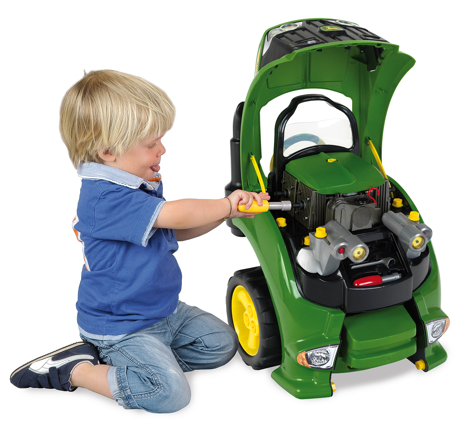 Von dieser Lernwerkstatt träumen kleine Mechanikerinnen und Mechaniker: Sie enthält eine komplette Traktor- und Motornachbildung in einem Block, der sich auseinanderschrauben und reparieren lässt.So haben Schweinwerfer und Anlasser eine Reparaturfunktion und Glühkerzen, Kotflügel, Räder und vieles andere mehr lassen sich von den kleinen Schraubern demontieren und wieder zusammenbauen. Alles ist so realitätsnah wie möglich - mit leuchtenden Schweinwerfern und typischem Hupengeräusch - und gleichzeitig kindgerecht und sicher. Der Schraubendreher passt perfekt in kleine Hände und schult beim Einsatz nicht nur die Motorik, sondern auch das räumliche Vorstellungsvermögen. Der gesamte Motorblock besteht aus hochwertigem Kunststoff und ist sehr stabil - ideal für einen unbeschwerten und langanhaltenden Spaß.John Deere Tractor EngineDer Traktor-Motorblock im John-Deere-Design ist eine 56-teilige Nachbildung mit vielen abschraubbaren und reparierbaren Teilen. Zum Lieferumfang gehören ein Schraubenzieher, ein Ringschlüssel sowie ein Zündkerzenschlüssel.