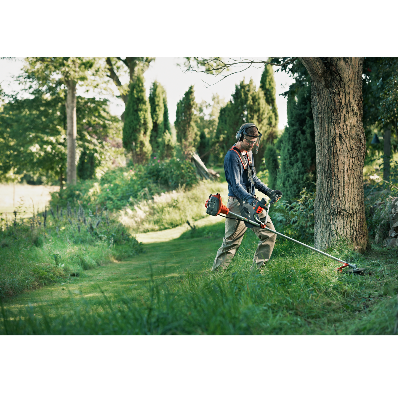 Komfortable Motorsense mit Trimmerkopf und Tragegurt! Die Husqvarna Motorsense 122R ist perfekt geeignet zum Trimmen von Gras im heimischen Garten. Durch das geringe Gewicht und den geräuscharmen Motor ist die Husqvarna 122R bequeme und komfortabel in der Handhabung. Die Motorsense ist mit Smart Start® ausgestattet, was einen schnellen Start mit minimalem Kraftaufwand ermöglicht. Die intuitiven Bedienelemente und der automatische Start-/Stopp-Schalter, welcher nach dem Gebrauch automatisch auf EIN zurückgesetzt wird, verbessern den Bedienkomfort. Die 122R wird mit dem R23 Trimmerkopf mit 43 cm Schnittbreite geliefert und hat einen geraden Schaft für eine bessere Reichweite, z. B. unter Büschen und Sträuchern.