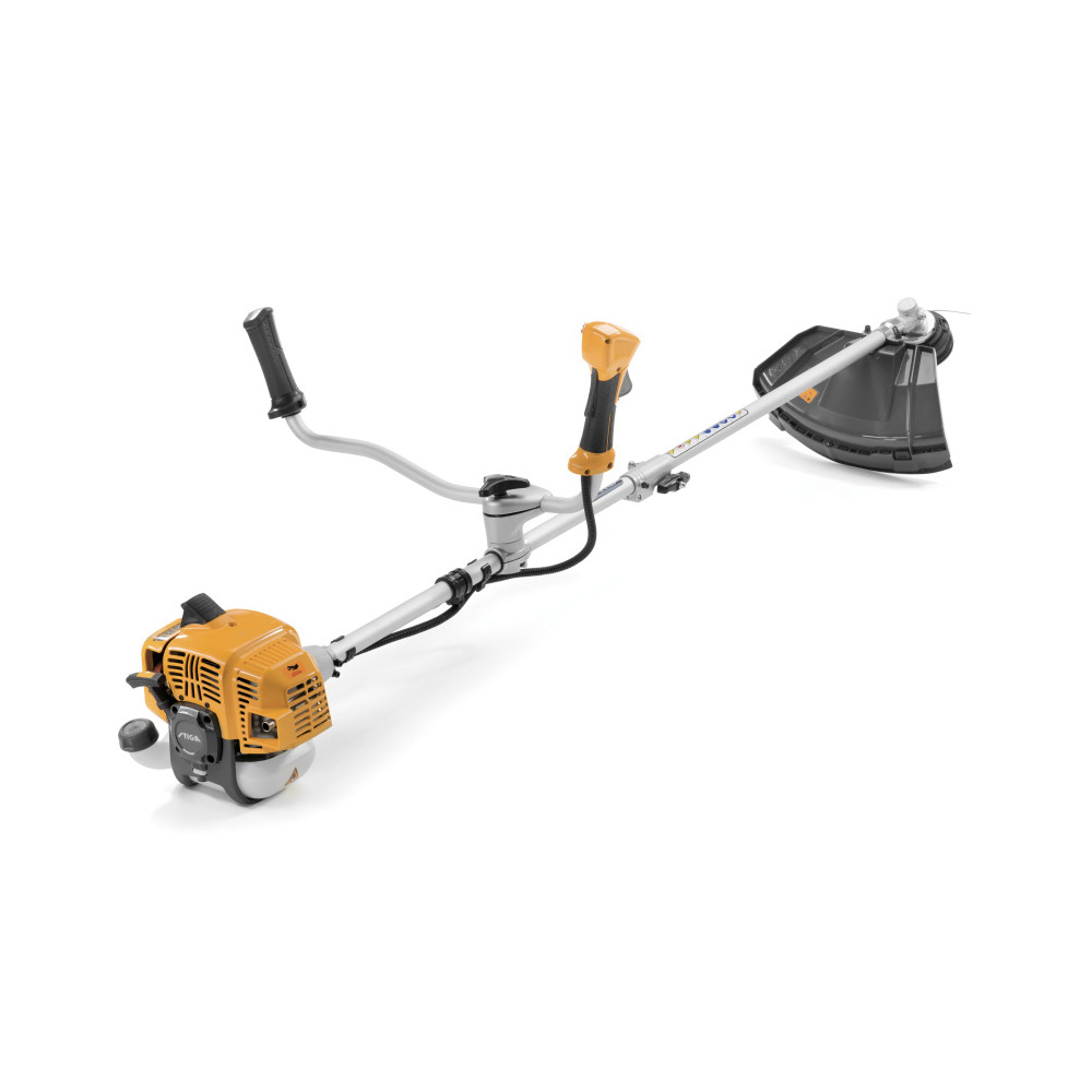 Handliche Motorsense mit 25 cm³ 2-Takt-Motor und 0,7 / 0,95 kW /PS. Einfaches arbeiten mit praktischen Bügelgriff und mitgelieferten Schultergurt.Mit den teilbaren Schaft ist die Maschine einfach zu transportieren und benötigt wenig Platz zur Lagerung.Durch die serienmäßige Ausrüstung mit Fadenkopf und 3-Zahnmesser ist die Maschine perfekt als Benzin - Rasentrimmer und als kompakte Motorsense für leichtes Gestrüpp oder langes Gras einsetzbar.Ideal für den universellen Einsatz in Ihrem Garten.Technische Daten:Motor 25,4ccm 2-Takt 0,7 KW 0,95 PSSchnittbreite mit Fadenkopf 430 mmFadenkopf: 2 Faden , 2,4mm 400 mm LängeMesser: 3-Flügel Gestrüpp mit 255 mm DurchmesserGewicht: nur 7,6 kg mit Werkzeug