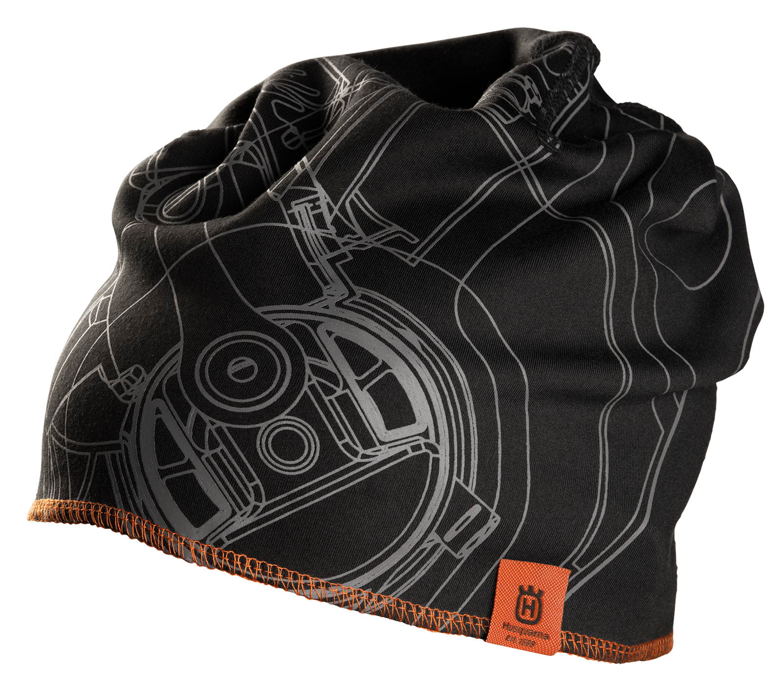 Coole, schwarze Husqvarna Xplorer Mütze Pioniersäge!Beanie mit Sägenaufdruck.Aus atmungsaktivem Coolmax® Air Material